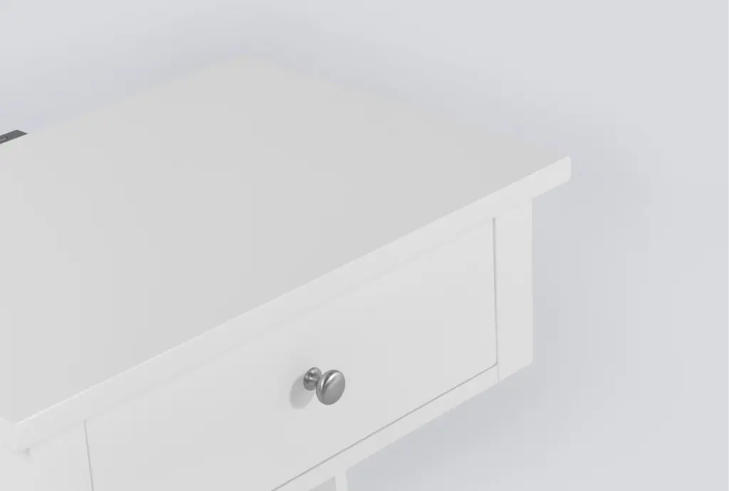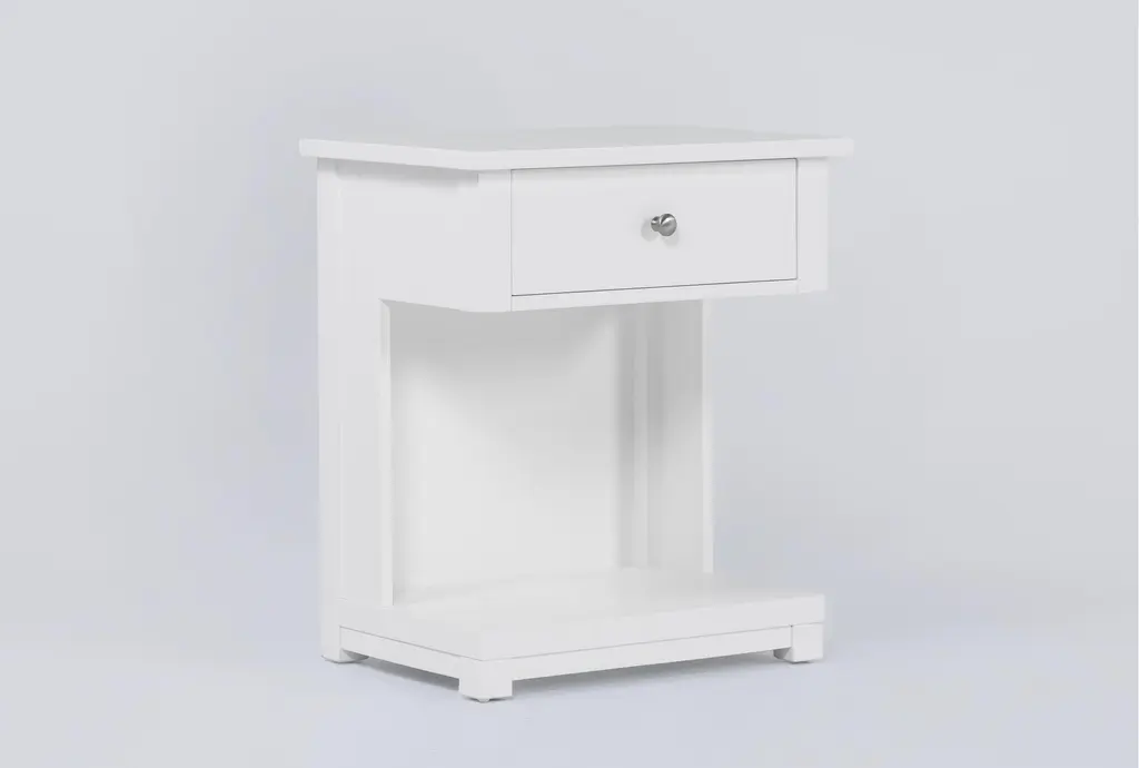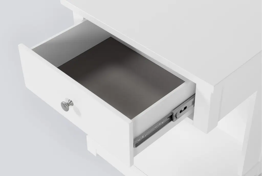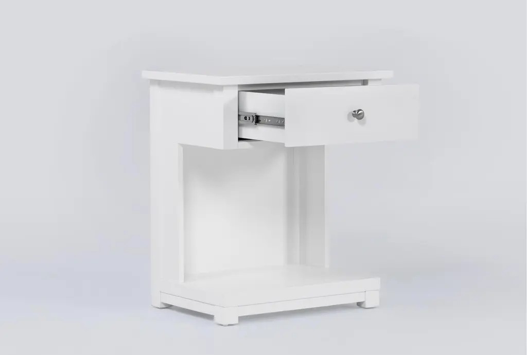 The Felipe White 1-Drawer C Table With USB is a perfect blend of functionality and style for your bedroom. Its clean, white rubberwood and MDF construction offers a neutral and minimalist design that complements any modern decor. With its convenient USB port, this table makes it easy to charge your devices while keeping them close at hand.