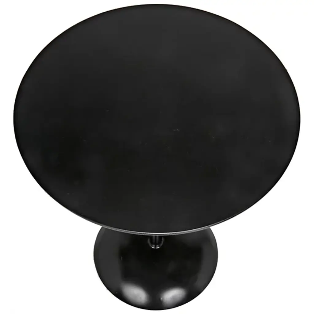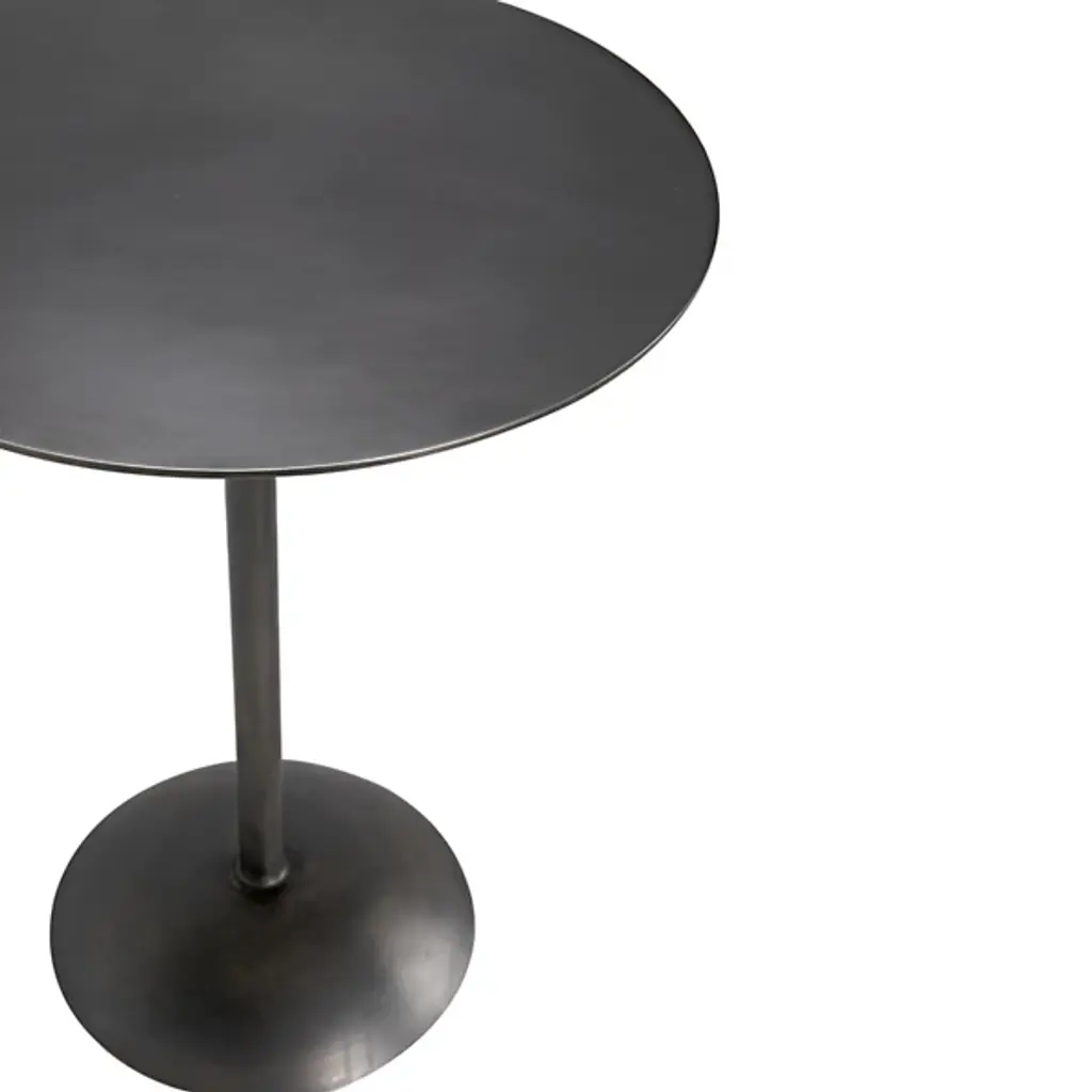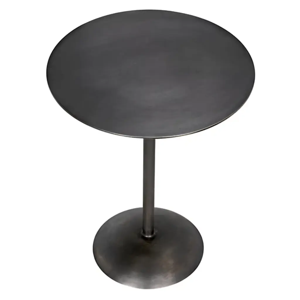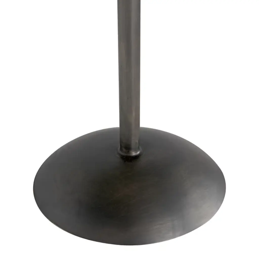 Provide a gorgeous accompaniment to retro-style interiors with the Felix Side Table from Noir. It features an industrial steel construction that is anything but subtle, it rests on a dome-shaped base, ascending from a sleek dome base via a central stem, placing a knob accent beneath a slender disc top, adding a touch of industrial intricacy to an otherwise simple design. The steel is hand-assembled, and may contain welding marks and spotting, lending an artisanal appeal to its each instance of each table.
