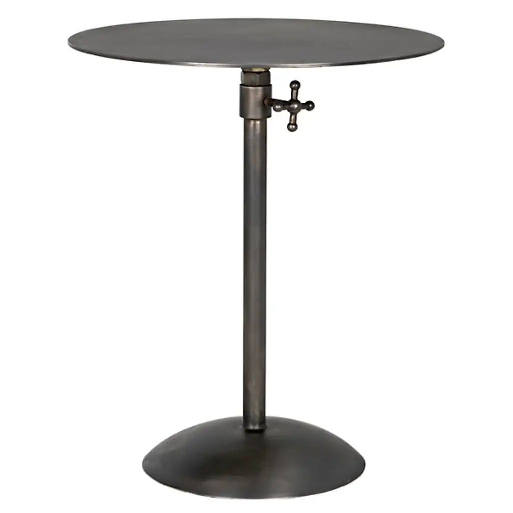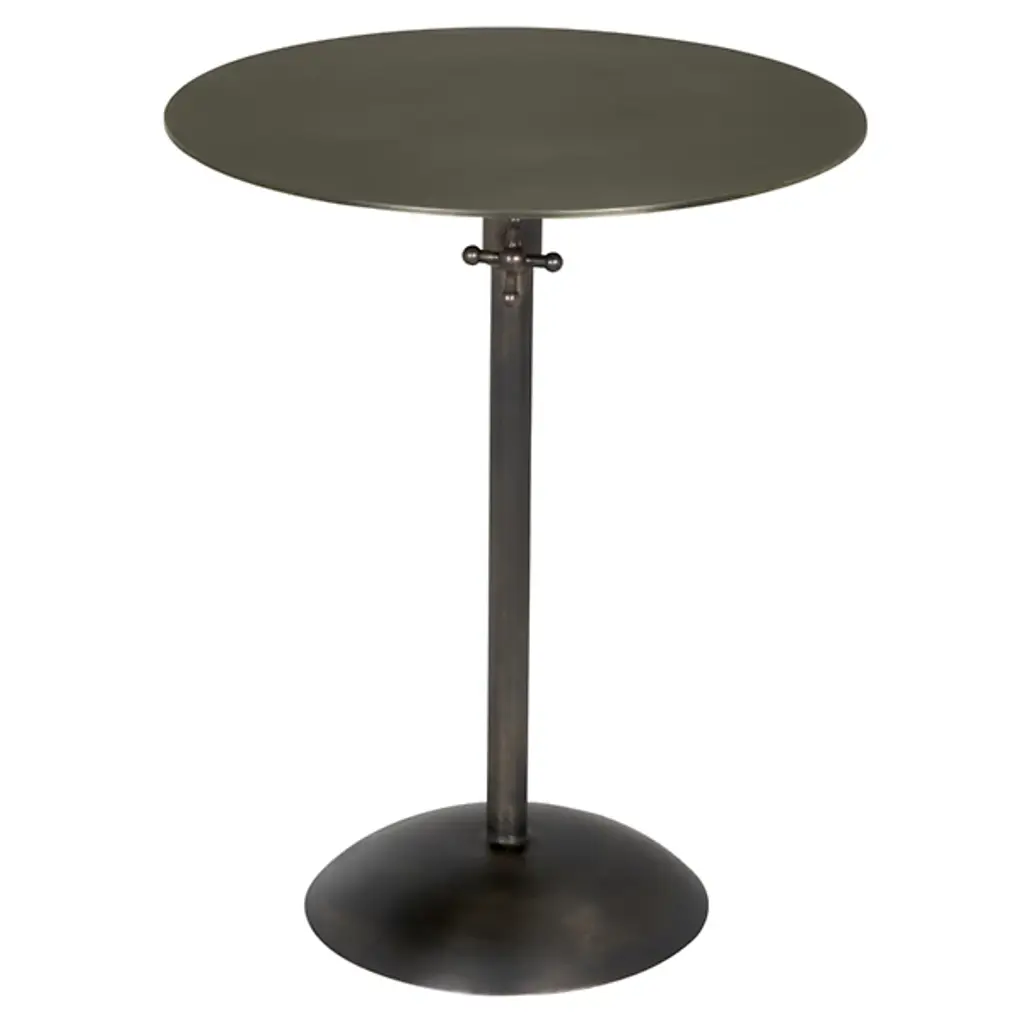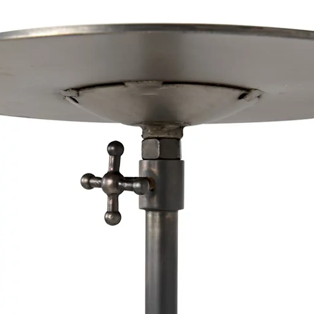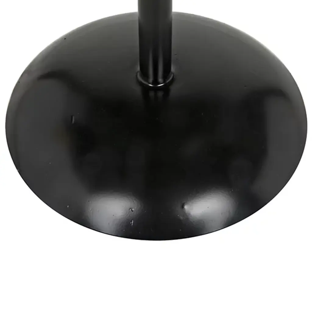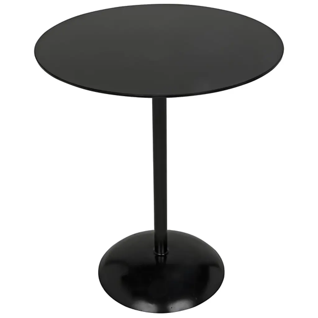 Provide a gorgeous accompaniment to retro-style interiors with the Felix Side Table from Noir. It features an industrial steel construction that is anything but subtle, it rests on a dome-shaped base, ascending from a sleek dome base via a central stem, placing a knob accent beneath a slender disc top, adding a touch of industrial intricacy to an otherwise simple design. The steel is hand-assembled, and may contain welding marks and spotting, lending an artisanal appeal to its each instance of each table.