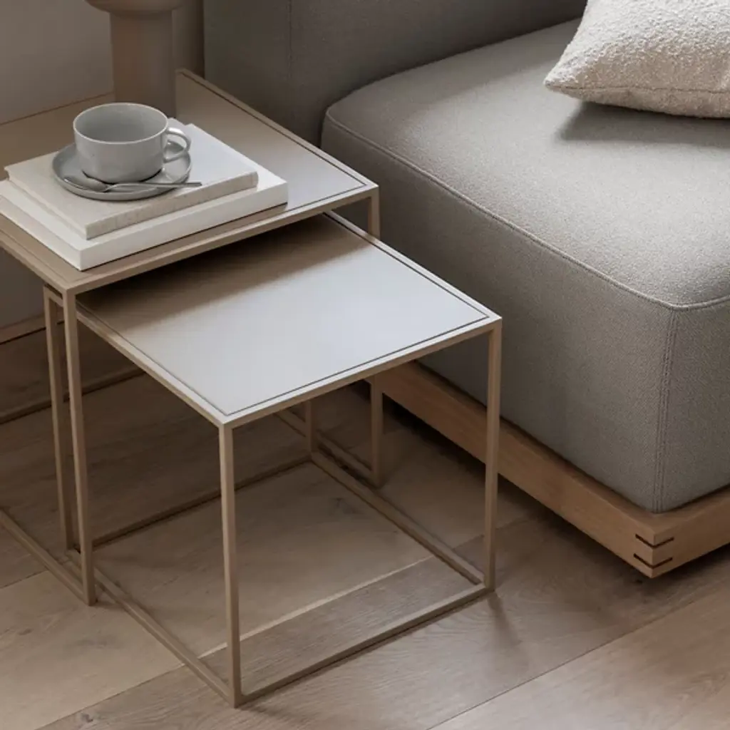 A perfect duo. The FERA Nesting Side Tables - Set of 2 by Blomus provides rooms the option for more surface or floor space with a simple, clean design. Able to be tucked under one another, this pair of a smaller and larger table have an openly-styled cubed form that is made from durable powder-coated steel that has a roughened finish. A blend of form and function, this practical set effortlessly works with a variety of décor styles to bring a contemporary touch to any room.