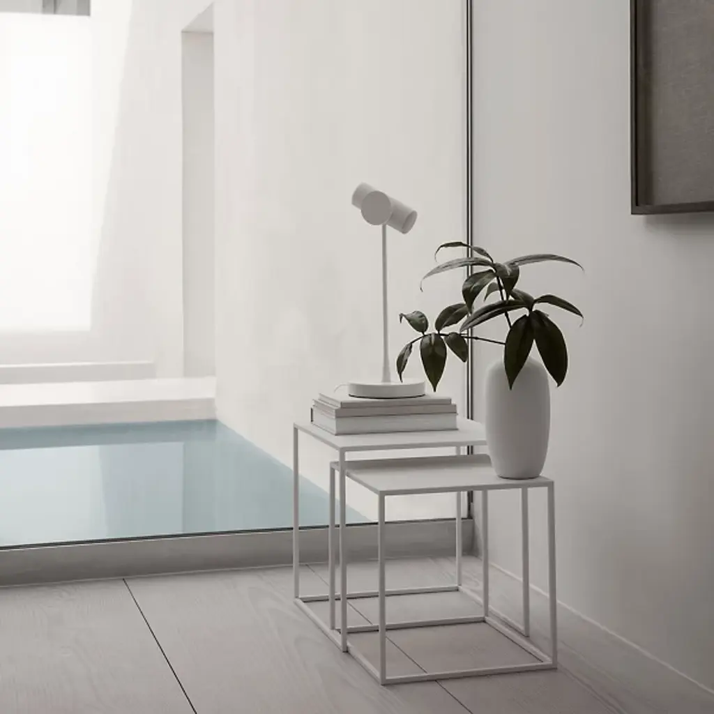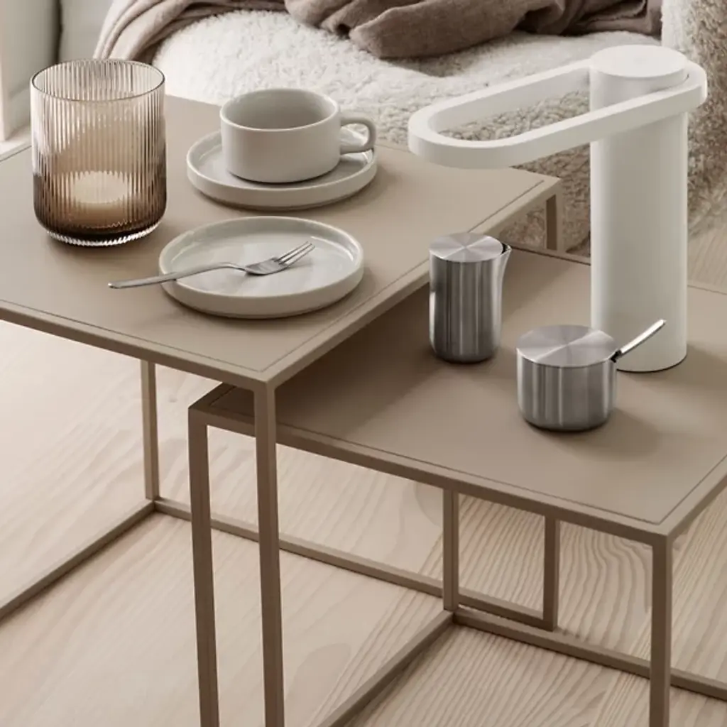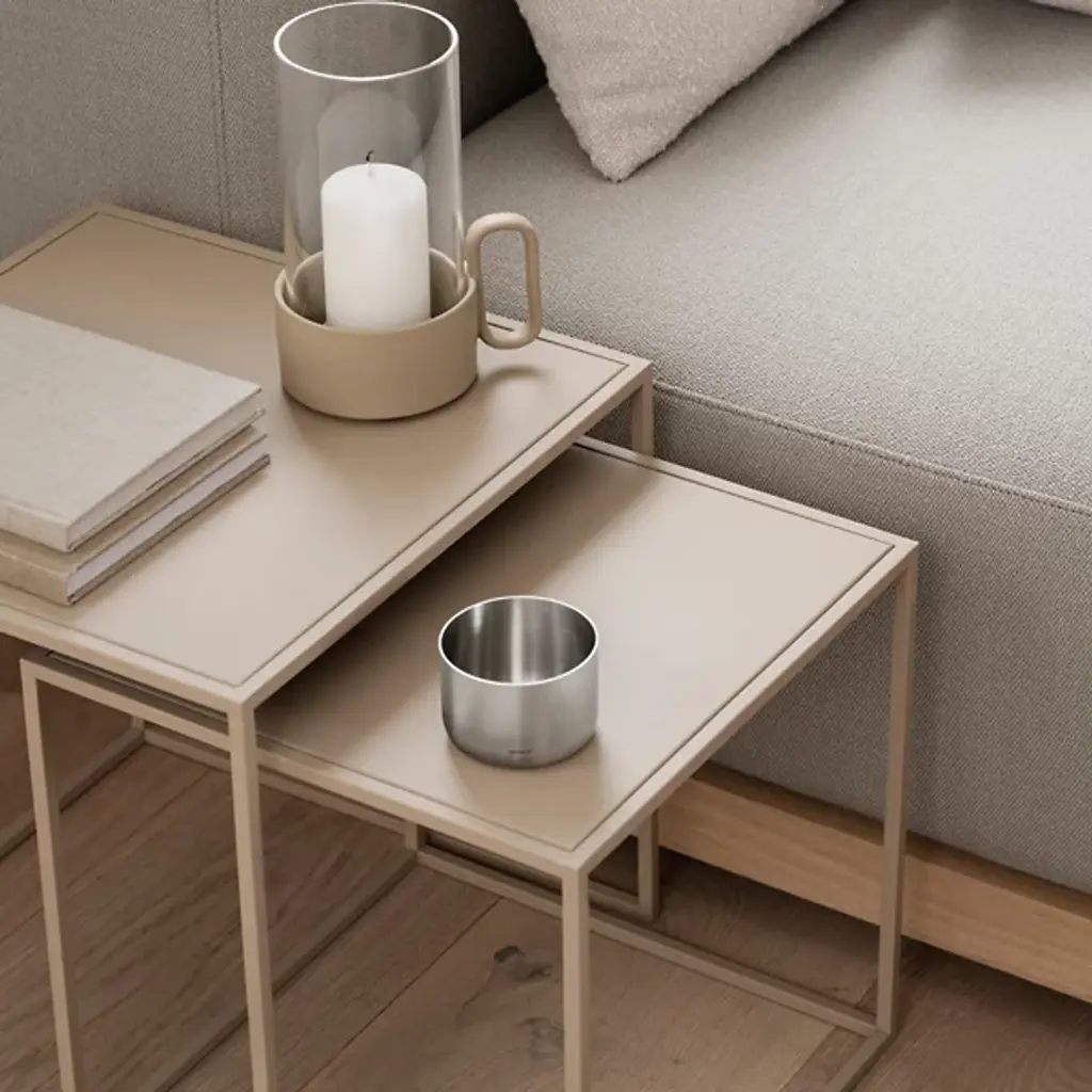 A perfect duo. The FERA Nesting Side Tables - Set of 2 by Blomus provides rooms the option for more surface or floor space with a simple, clean design. Able to be tucked under one another, this pair of a smaller and larger table have an openly-styled cubed form that is made from durable powder-coated steel that has a roughened finish. A blend of form and function, this practical set effortlessly works with a variety of décor styles to bring a contemporary touch to any room.