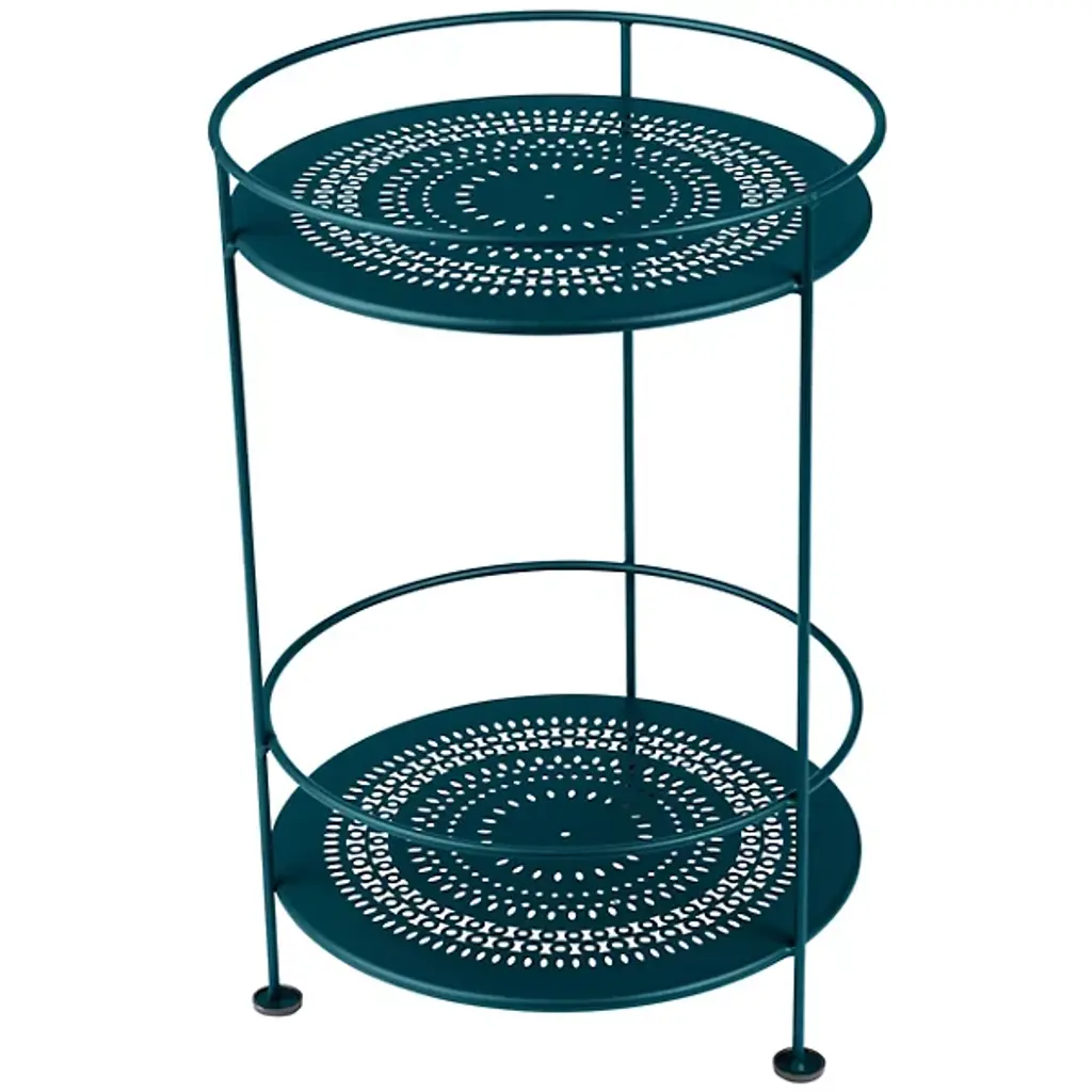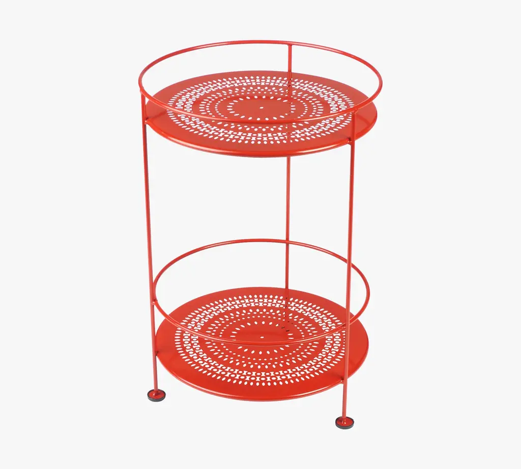 All the charm and authenticity of bistro life for your patio or garden. Originally manufactured in 1889 for Parisian sidewalk cafés, today Fermob is still crafted in France, bringing fun color to dining and entertaining. Built with outdoor-worthy materials, this side table on casters boasts an understated, elegant design and is ideal for a garden or patio – but is also a versatile piece in the kitchen or in a dining room. With its double table top, it can act as a mini bar or as a spot to display your favorite potted blooms.