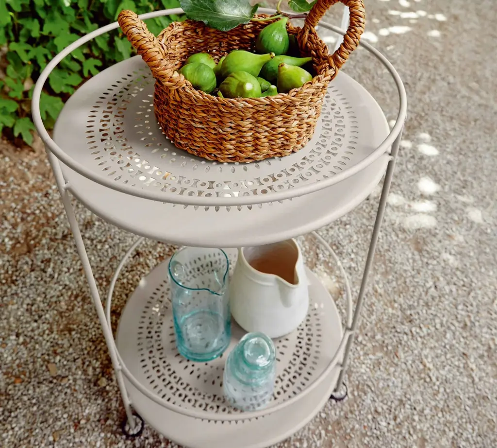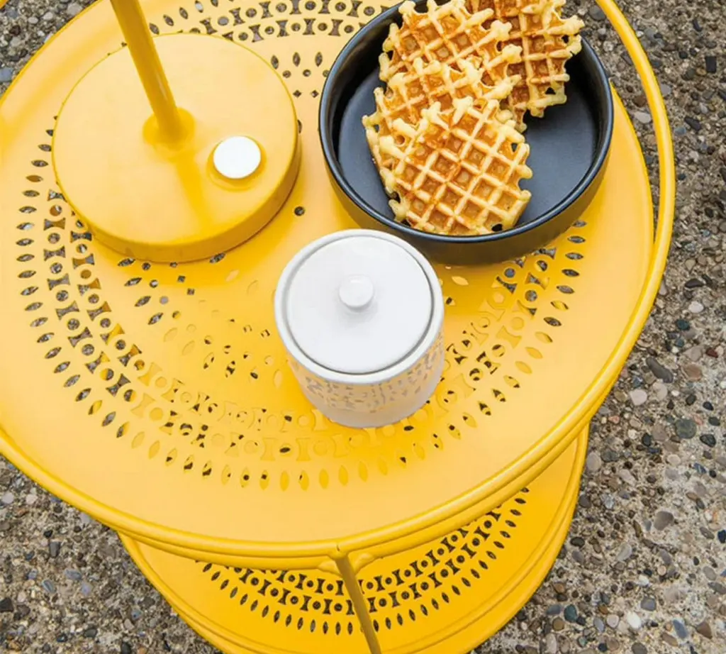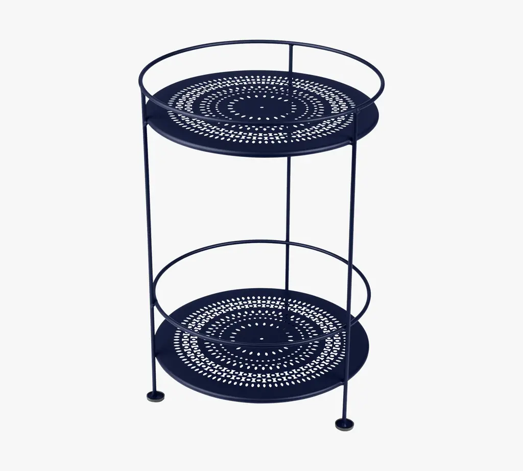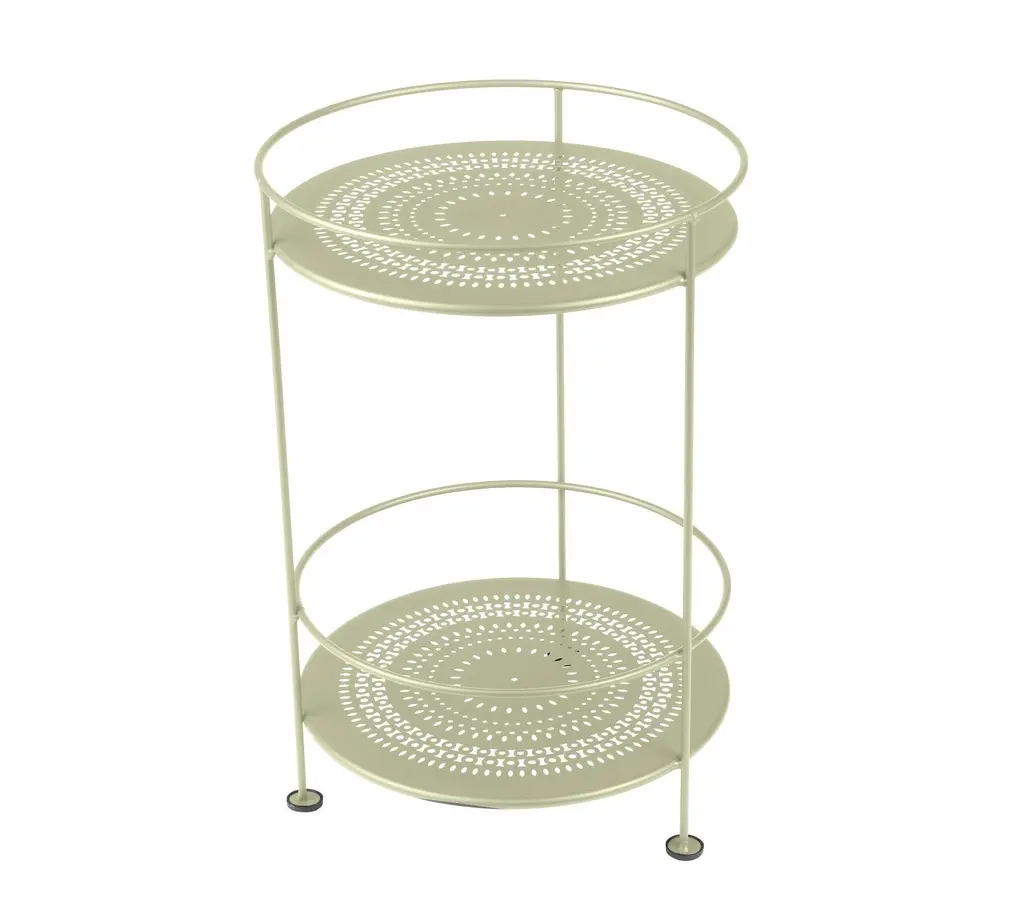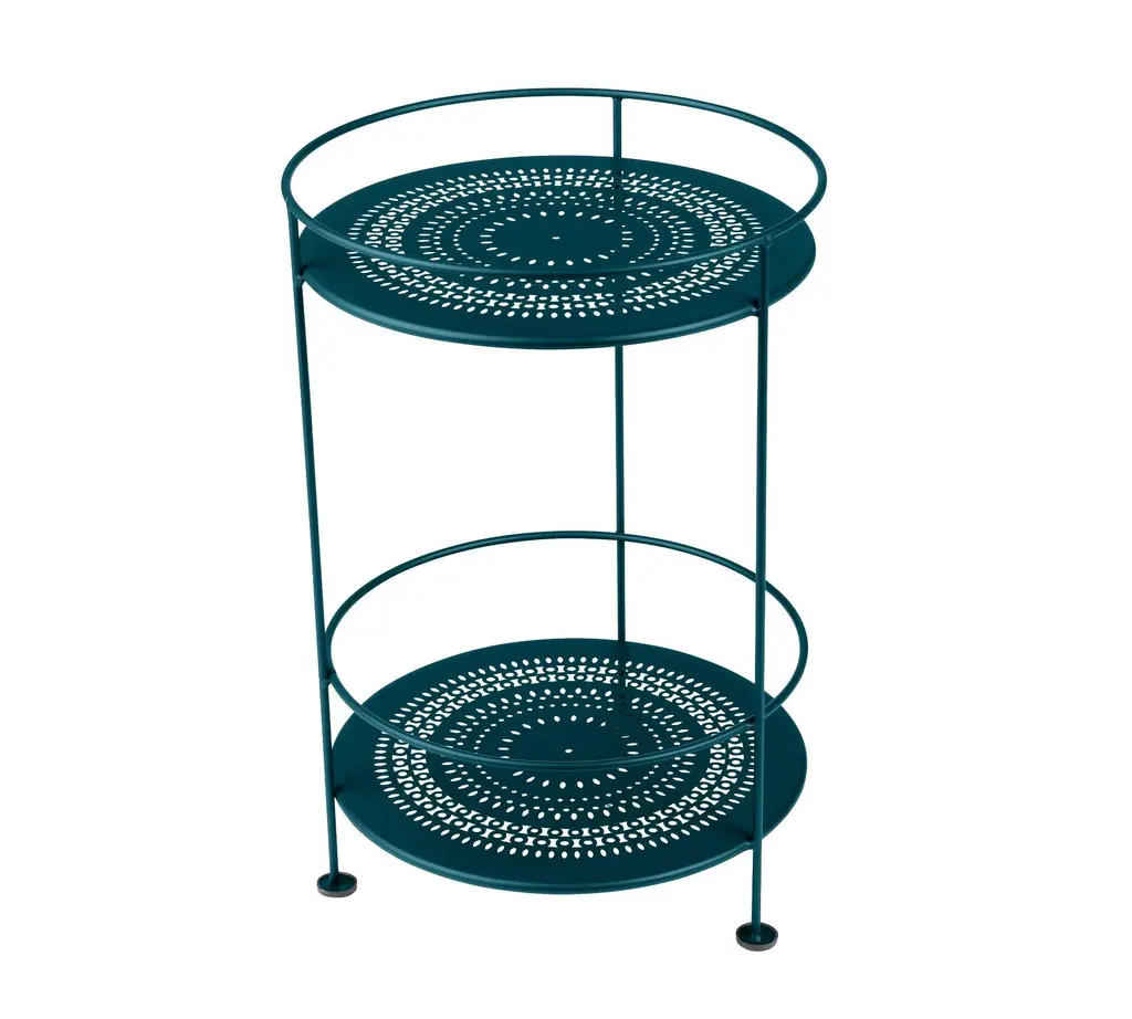 All the charm and authenticity of bistro life for your patio or garden. Originally manufactured in 1889 for Parisian sidewalk cafés, today Fermob is still crafted in France, bringing fun color to dining and entertaining. Built with outdoor-worthy materials, this side table on casters boasts an understated, elegant design and is ideal for a garden or patio – but is also a versatile piece in the kitchen or in a dining room. With its double table top, it can act as a mini bar or as a spot to display your favorite potted blooms.
