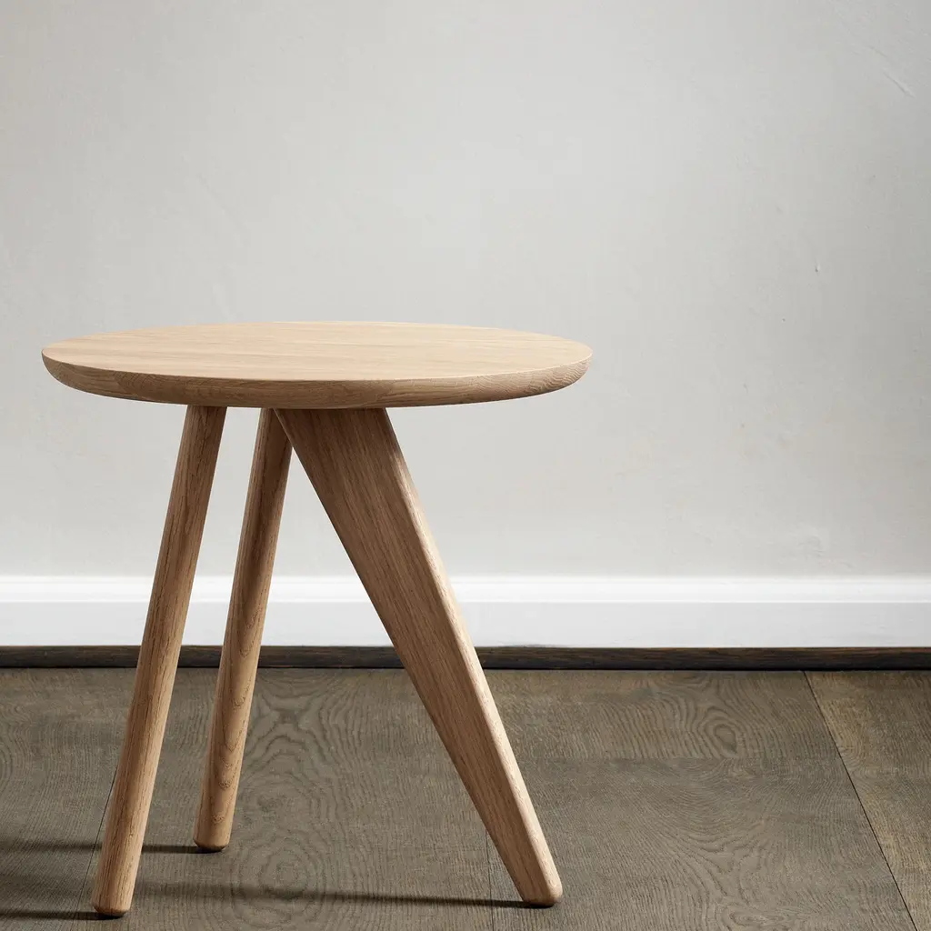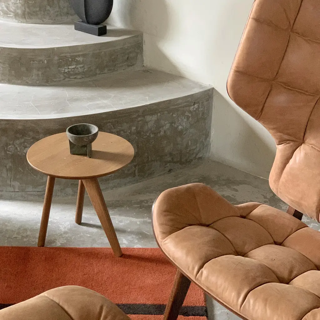The Fin Side Table, designed by Kristian Sofus Hansen and Tommy Hyldahl, pairs perfectly with iconic Norr11 chairs like the Mammoth and Elephant. Its solid oak top creates a subtle illusion—looking razor-thin from one angle but sturdy and robust from another. It is supported by two turned oak sections and a distinct fin-shaped leg. Available in 4 oak finishes.
