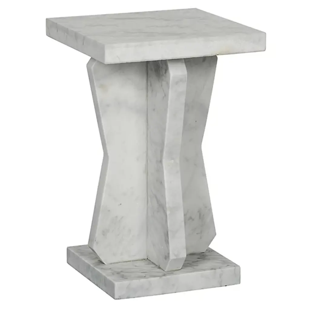 The simplicity of the stone is what shines in this expertly handcrafted white marble side or accent table. No two pieces of stone, and therefore no two tables, will be identical.