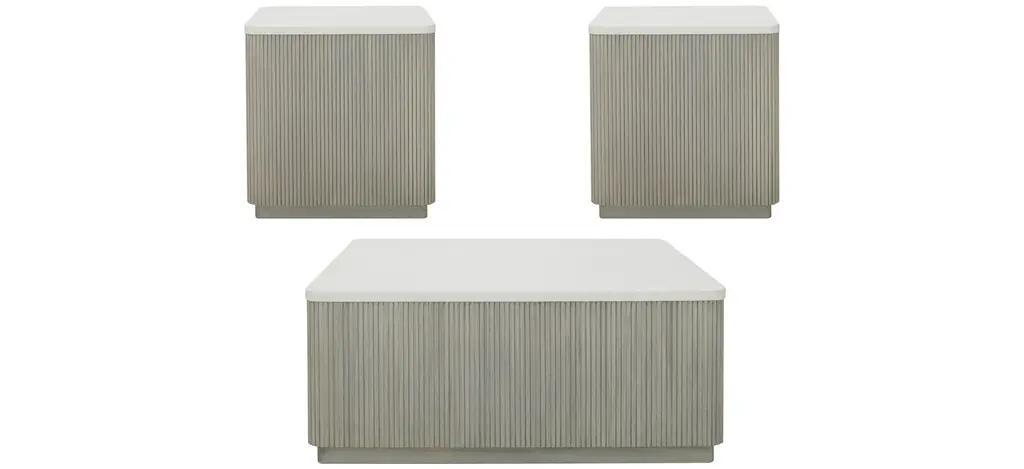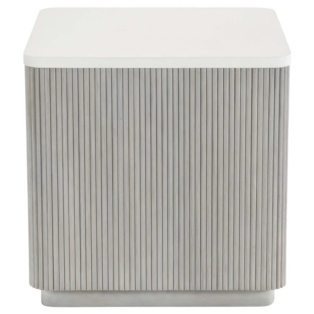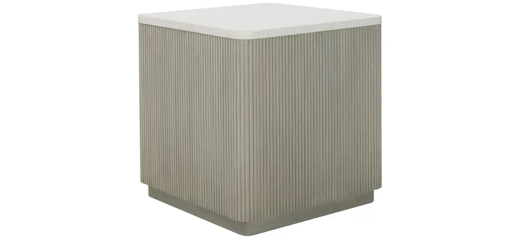 Make a statement of naturally modern style with the Finnegan Accent Table. The distinctive reeded sides, and the rounded corners of the faux stone top, express a pleasant organic vibe. Picture this table in a living space with lots of natural light to highlight the balance of materials and neutral tones.