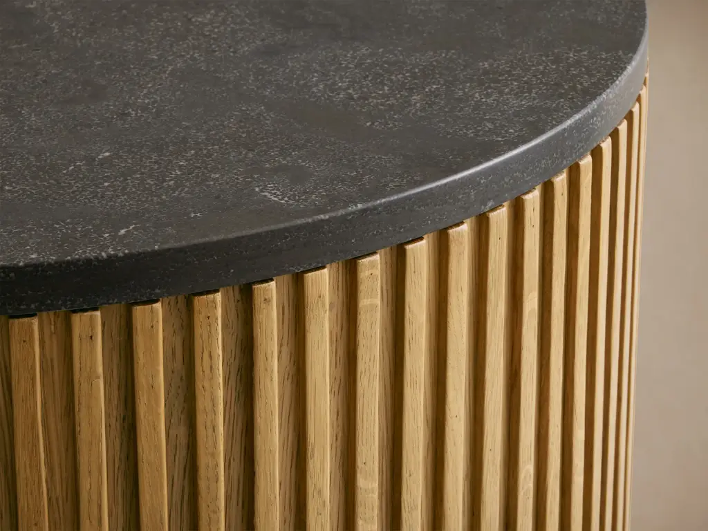 Our Finnley Collection showcases a stunning mixed-material design, inviting elevated style into your home. Hand-finished pine from Finland or oak wood is luxuriously complemented by stone tops, accented by brass plinth bases and reeded oak detailing. The result is an eclectic-yet-chic collection that adds a touch of nature’s alchemy to any living space.