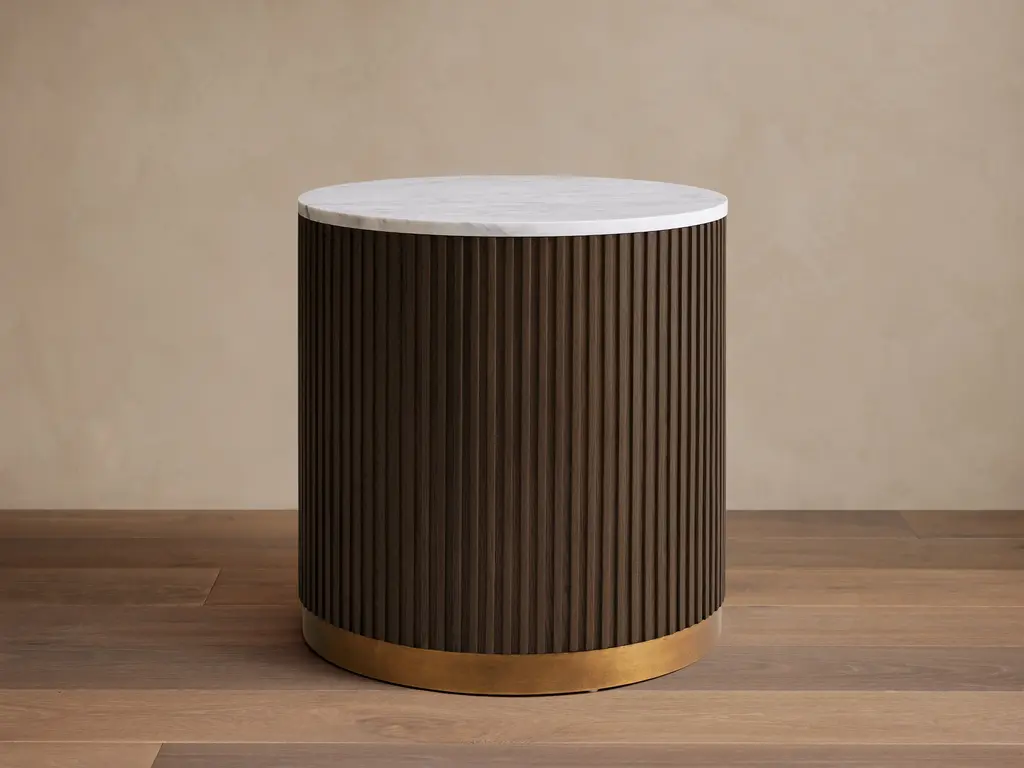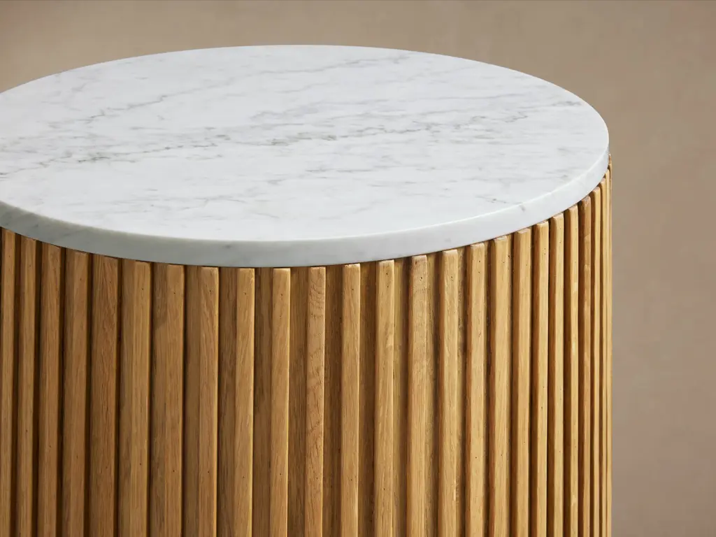 Our Finnley Collection showcases a stunning mixed-material design, inviting elevated style into your home. Hand-finished pine from Finland or oak wood is luxuriously complemented by stone tops, accented by brass plinth bases and reeded oak detailing. The result is an eclectic-yet-chic collection that adds a touch of nature’s alchemy to any living space.