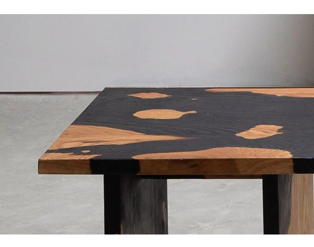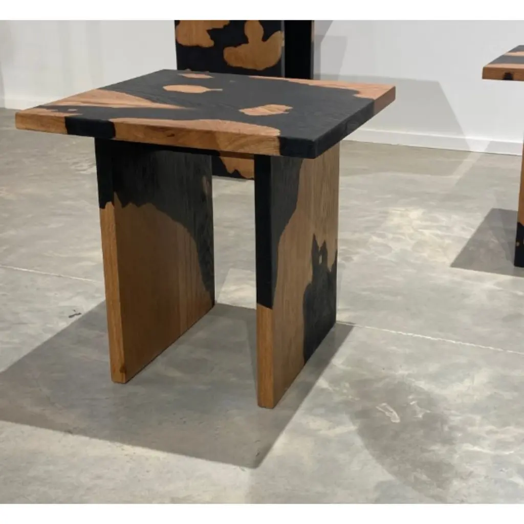 Fire oak side table I by Daniel ElkayamOne of a KindDimensions: D 40 x W 40 x H 35 cmMaterials: Oak WoodDaniel Elkayam — Designer Jerusalem-born Art-designer and Photographer based in Tel-Aviv. Operating in the field of sustainable home decor and specializing in conceptual design, material exploring, and story-telling through objects.Graduated in 2019 his Bachelor's studies at the Industrial design department at Bezalel Academy of Arts and Design, Jerusalem. A former member of the Bezalel Alumni Design Incubator 2020. Won the excellent scholarship of America-Israel cultural foundation of 2019Inspired by nature and its phenomenons, the artist transforms natural materials and aesthetics into one-of-a-kind unique objects.In his works, Daniel implements his curiosity and yearning for unrefined aesthetics, and by material transformation and unique techniques he is developing in his studio, he shows how unattractive materials can be not only valid but luxurious.Elkayam examines the range between art and design by taking things in and out of their context, creating hybrids between different worlds of content, intervening in natural processes, while leaving a gap for the unexpected, the unknown.He expresses his inner world and illustrates his ideas by creating objects and experiences.Through his perspective of materiality, and empathetic vision of his surroundings, he developed an intuitive way of creation with experimental materials such as algae, corrosion, charcoal, and more. Every collection of objects expresses different material research and follows curious narratives and a variety of topics such as locality, transience, and decay of materials.