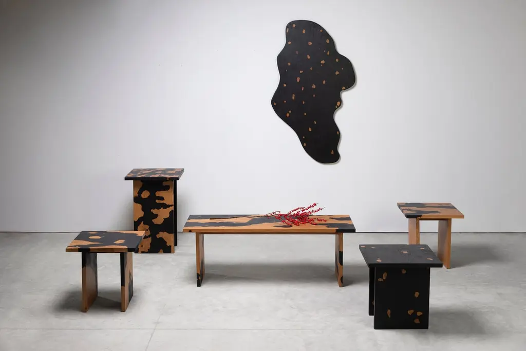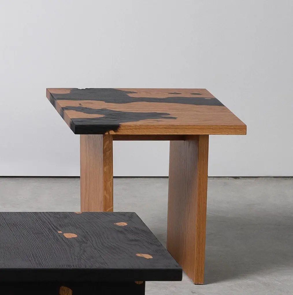 Fire oak side table II by Daniel ElkayamOne of a KindDimensions: D 40 x W 40 x H 35 cmMaterials: Oak WoodDaniel Elkayam — Designer Jerusalem-born Art-designer and Photographer based in Tel-Aviv. Operating in the field of sustainable home decor and specializing in conceptual design, material exploring, and story-telling through objects.Graduated in 2019 his Bachelor's studies at the Industrial design department at Bezalel Academy of Arts and Design, Jerusalem. A former member of the Bezalel Alumni Design Incubator 2020. Won the excellent scholarship of America-Israel cultural foundation of 2019Inspired by nature and its phenomenons, the artist transforms natural materials and aesthetics into one-of-a-kind unique objects.In his works, Daniel implements his curiosity and yearning for unrefined aesthetics, and by material transformation and unique techniques he is developing in his studio, he shows how unattractive materials can be not only valid but luxurious.Elkayam examines the range between art and design by taking things in and out of their context, creating hybrids between different worlds of content, intervening in natural processes, while leaving a gap for the unexpected, the unknown.He expresses his inner world and illustrates his ideas by creating objects and experiences.Through his perspective of materiality, and empathetic vision of his surroundings, he developed an intuitive way of creation with experimental materials such as algae, corrosion, charcoal, and more. Every collection of objects expresses different material research and follows curious narratives and a variety of topics such as locality, transience, and decay of materials.