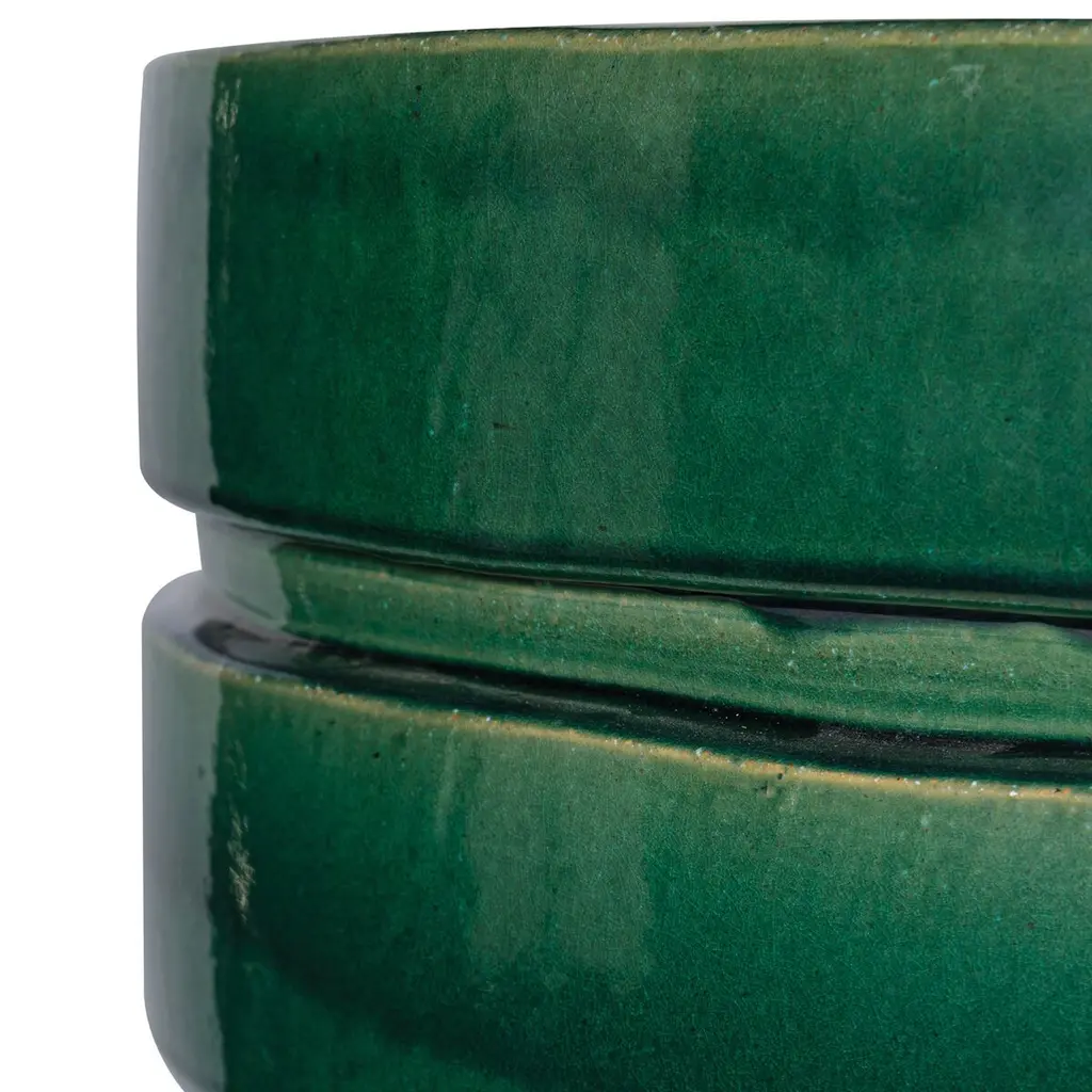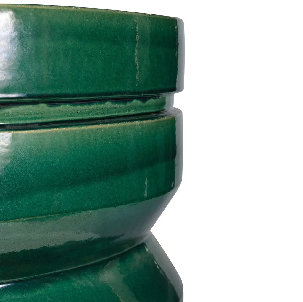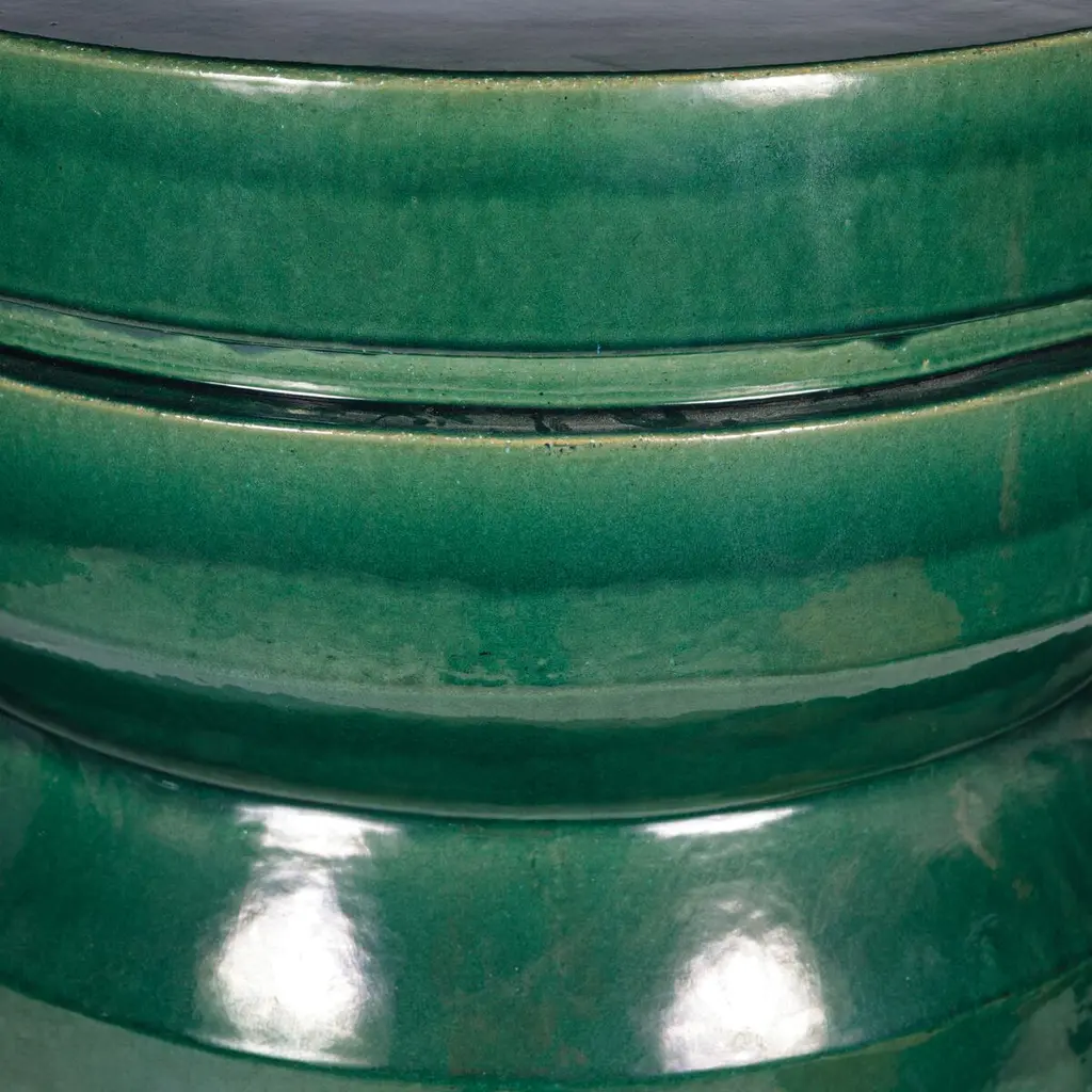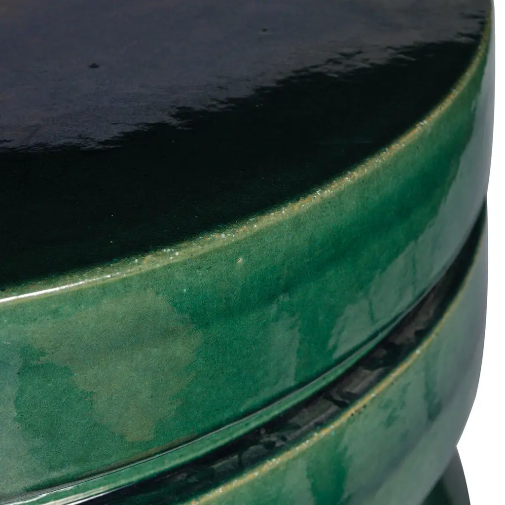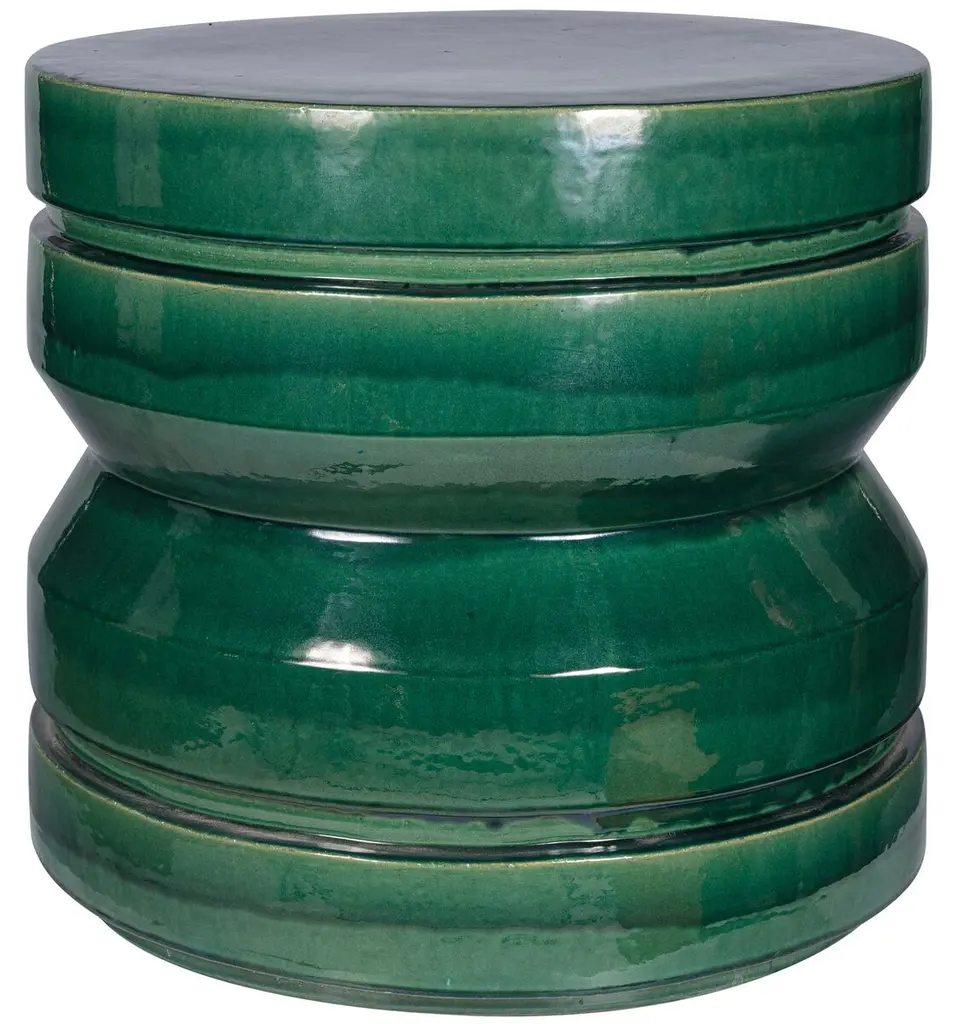 This Outdoor Accent Table exudes modern elegance with its curved notch details and glazed finish, adding a classic twist to its design. The semigloss finish enhances its polished and refined appearance, making it an ideal accent for both indoor and outdoor living spaces. This cutting-edge collection features handcrafted organic sensuous ceramic pieces, showcasing crystalline glazes that offer "jewel" finishes and ensure strength with durability. Embrace the uniqueness of each piece, as handcrafted ceramics may exhibit small color, glaze, and surface variations, contributing to their character and charm.