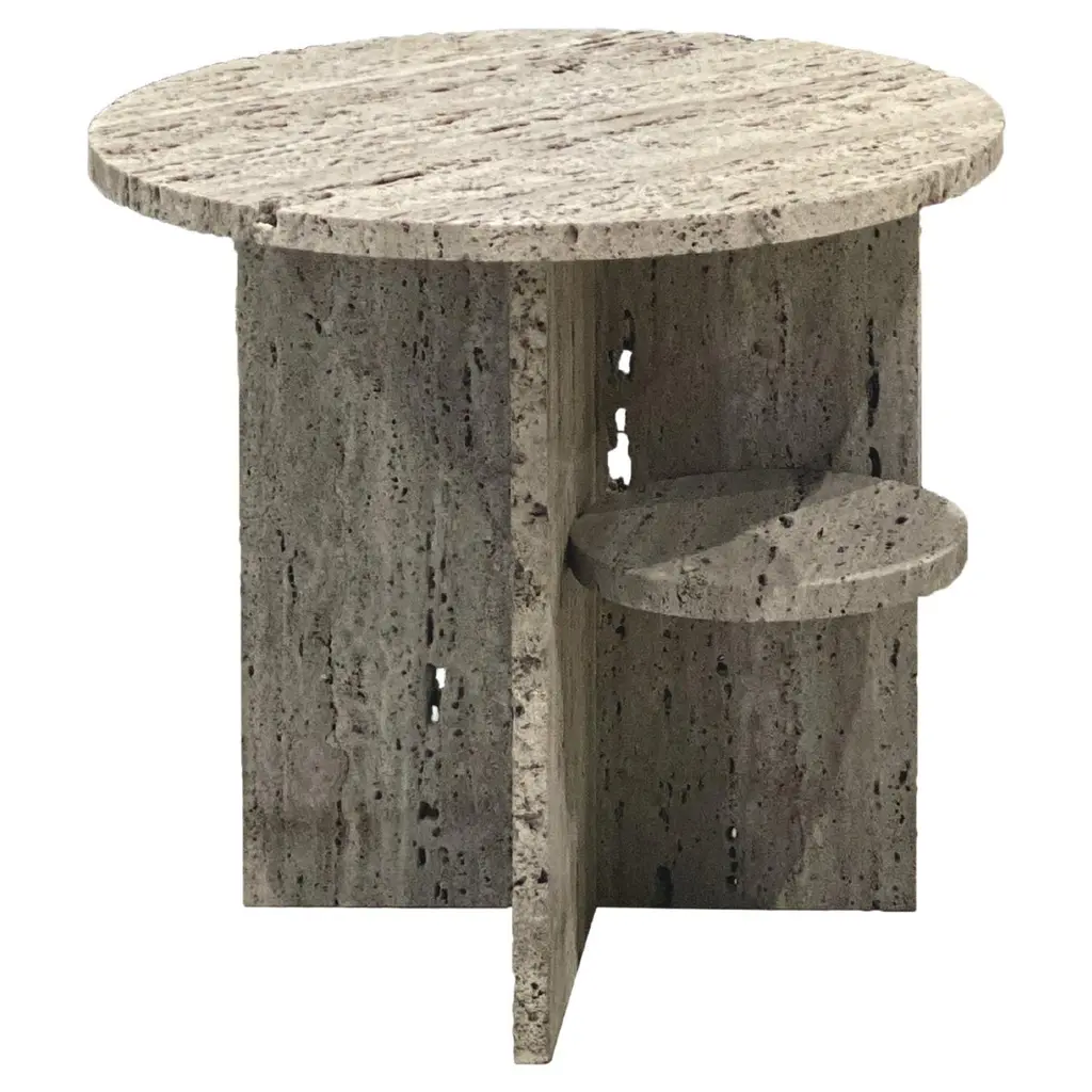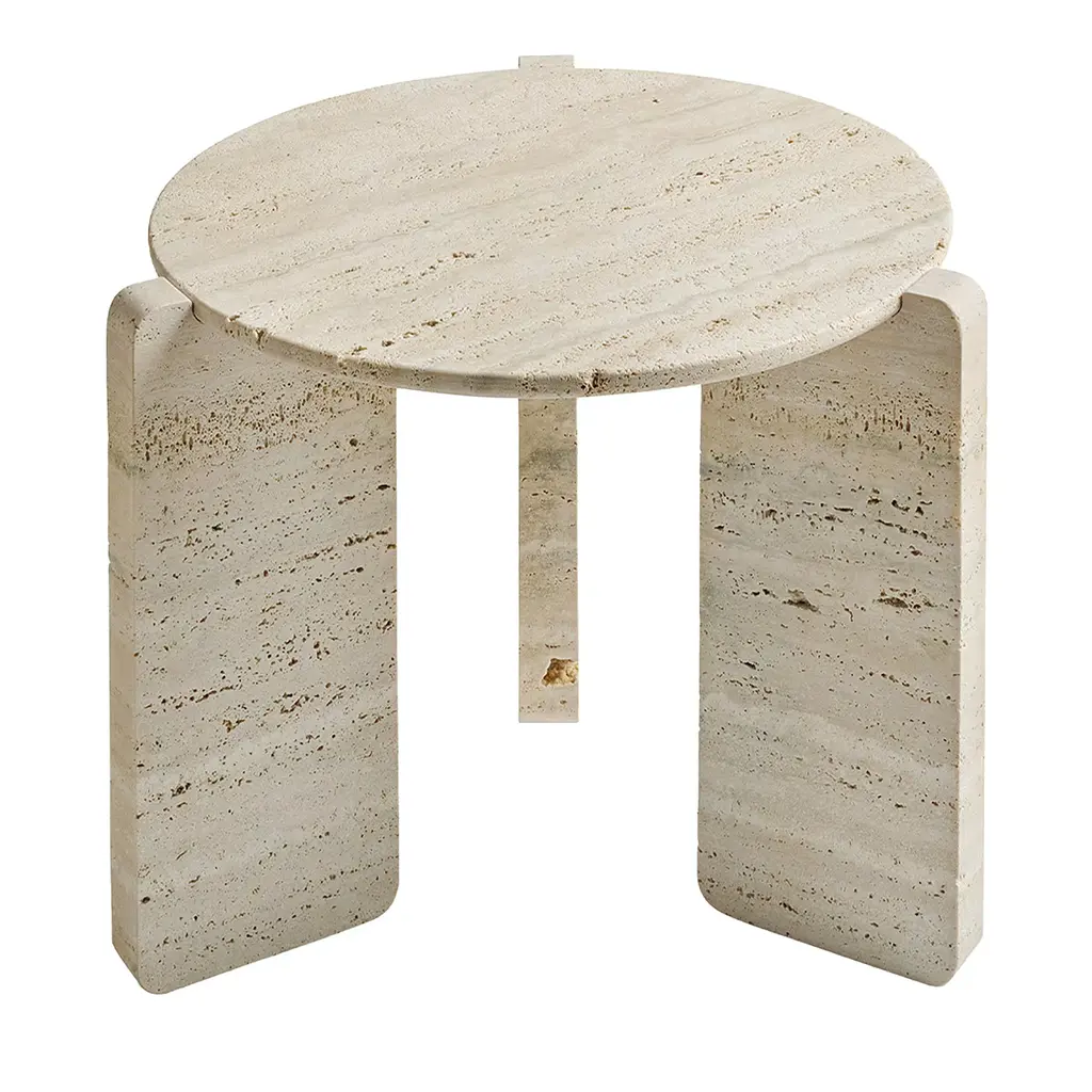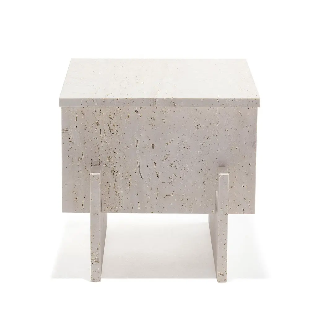 "Fit Side Table" Minimalist Travertine Cream Marble Side Table By Aparentment