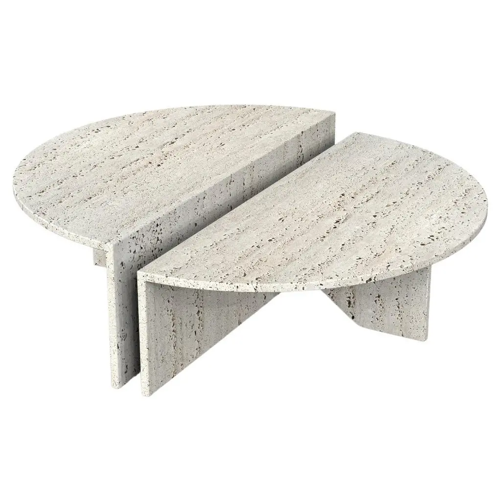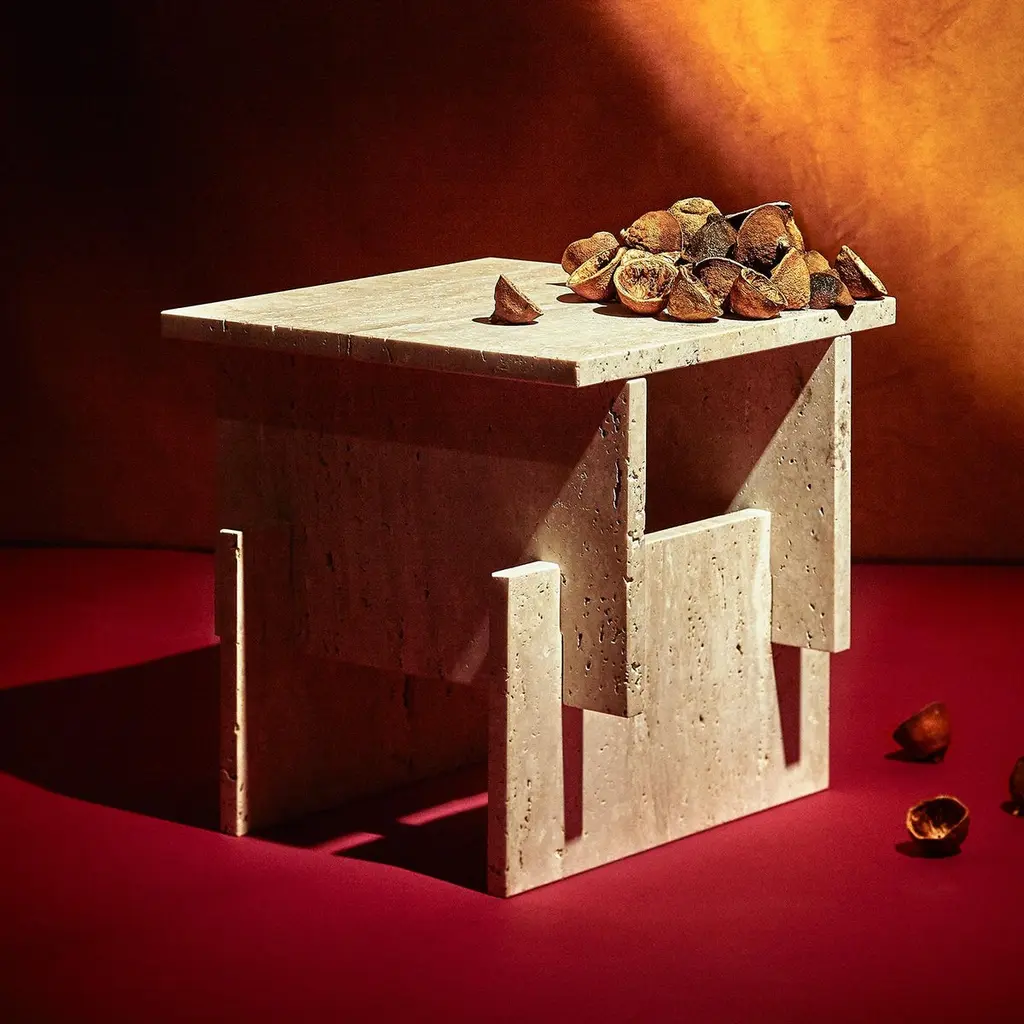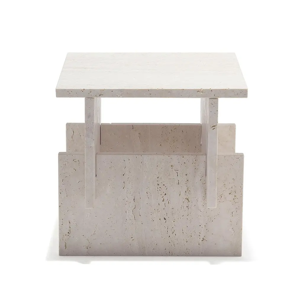 The Fit Side Table is a minimalist style low table made of treated Travertine marble. This side table is composed by five marble pieces, all of them assembled in a logical and harmonious way.Josep Vila Capdevila, head designer of Aparentment, was inspired by the mediterranean ancient cultures, civilizations and landscapes recalling "Cold Mediterranean", which is the essence of Aparentment.
