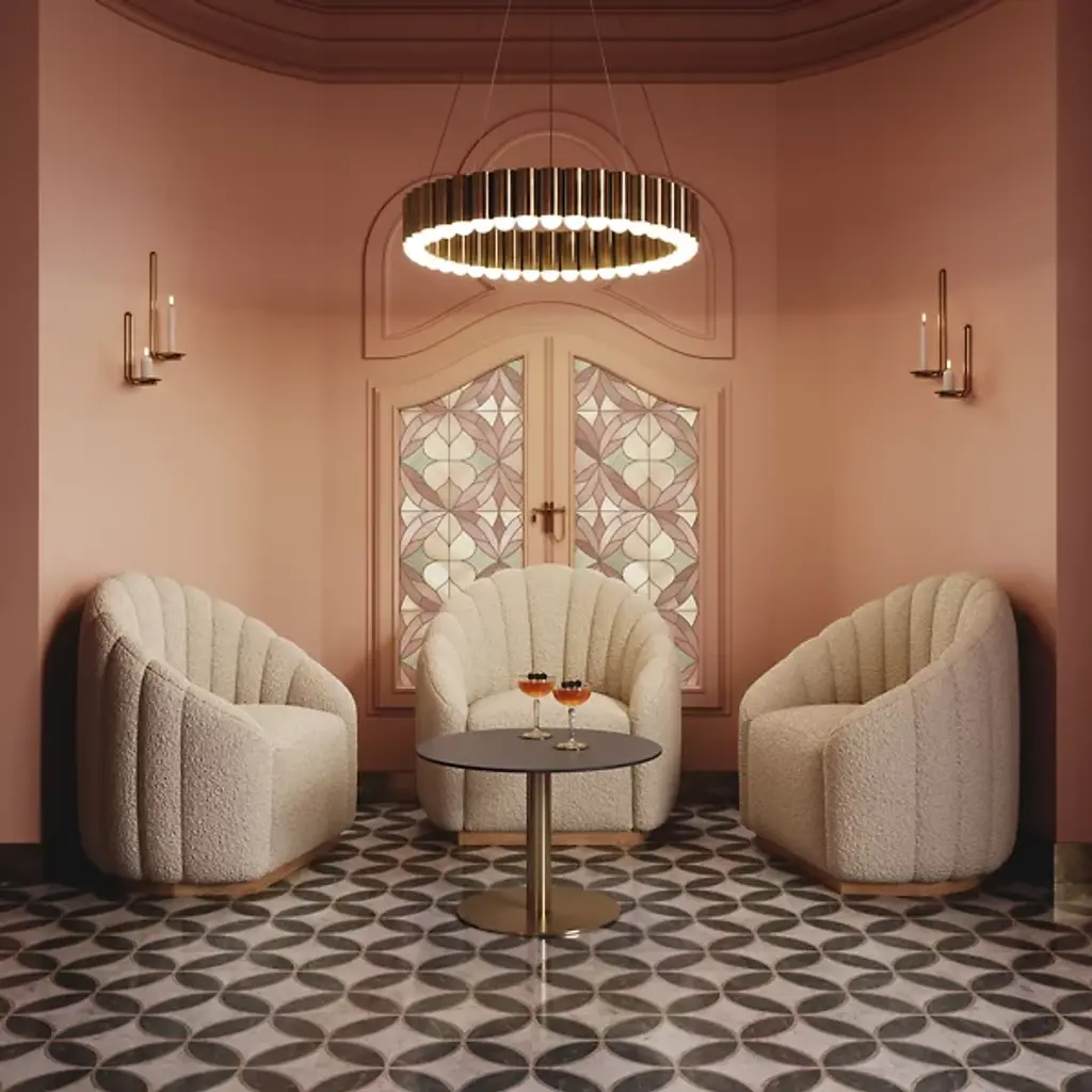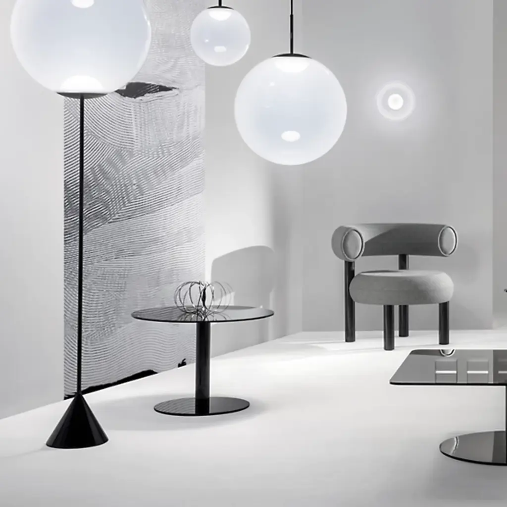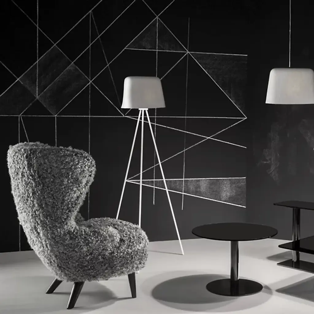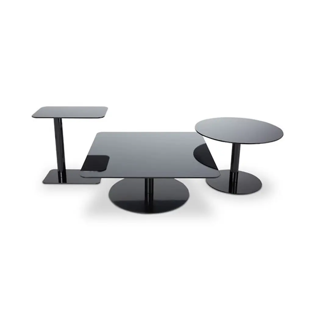 A highly reflective coffee or side table. The Flash Round Table from Tom Dixon features a minimalist look that makes sure its gleaming, golden surface is at the center of attention. A round, mirrored bronze top sits atop a similarly shaped base that is made out of a durable brass-plated steel, resulting in an uncompromising metallic surface. It has a high-end and luxurious appearance that makes it ideal for placing in an ultra-modern living room.