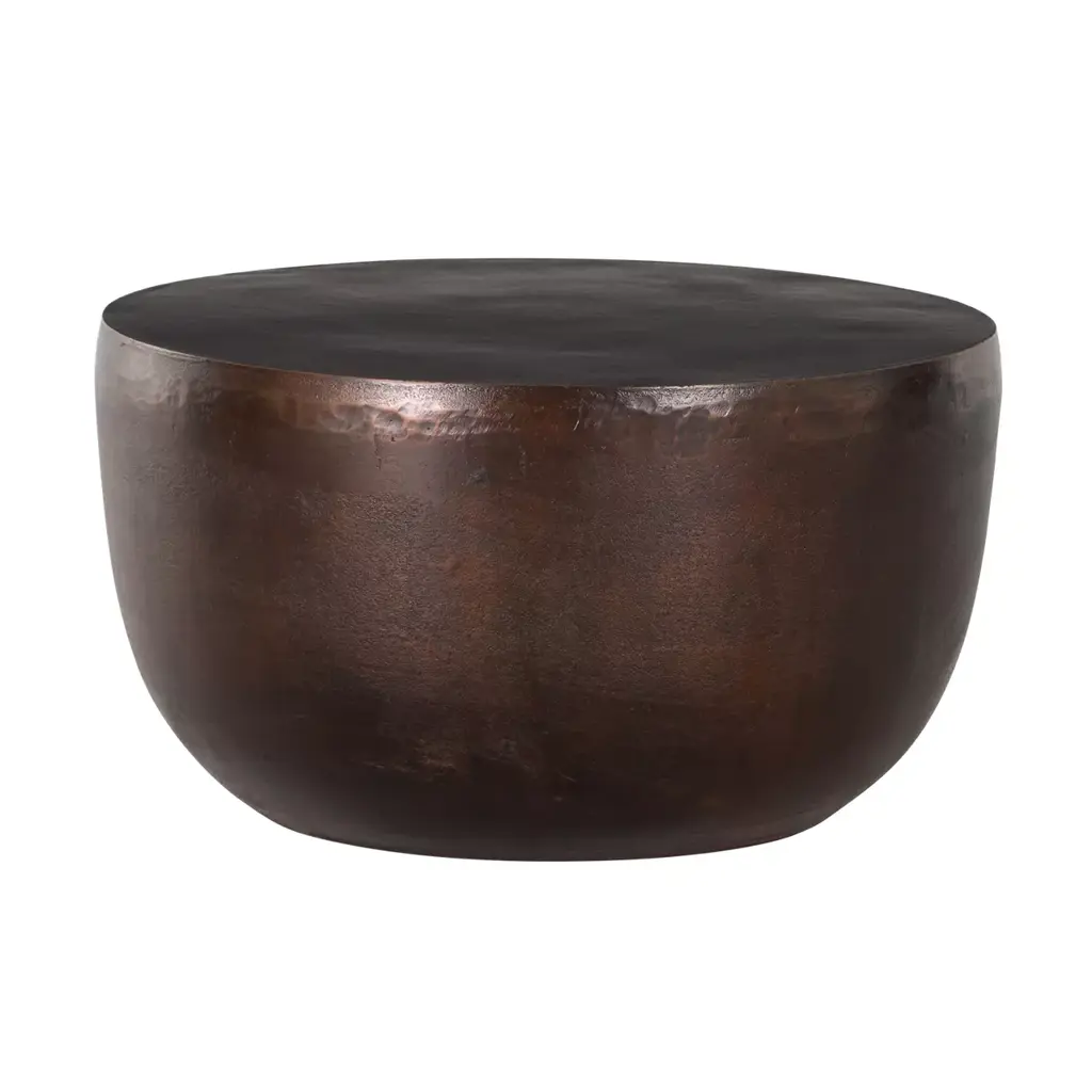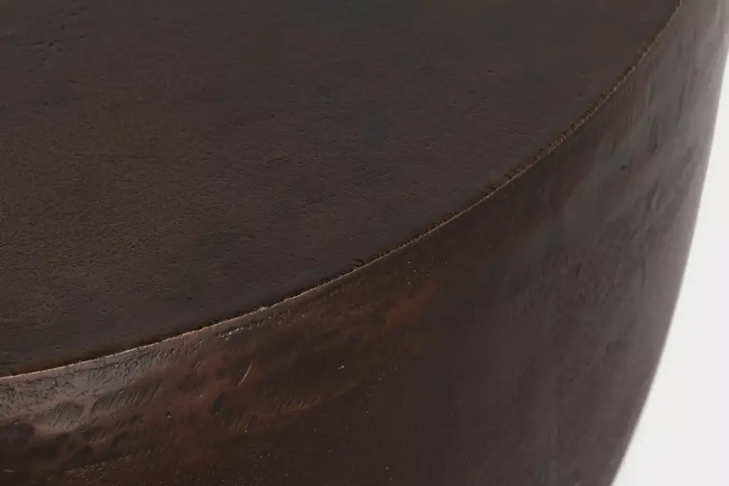 You can style our Flint end table indoors or out. Crafted with aluminum, this piece boasts a clean, dynamic silhouette and the natural sheen of an aged grey or antique rust finish. Cover or store indoors during inclement weather or when not in use.