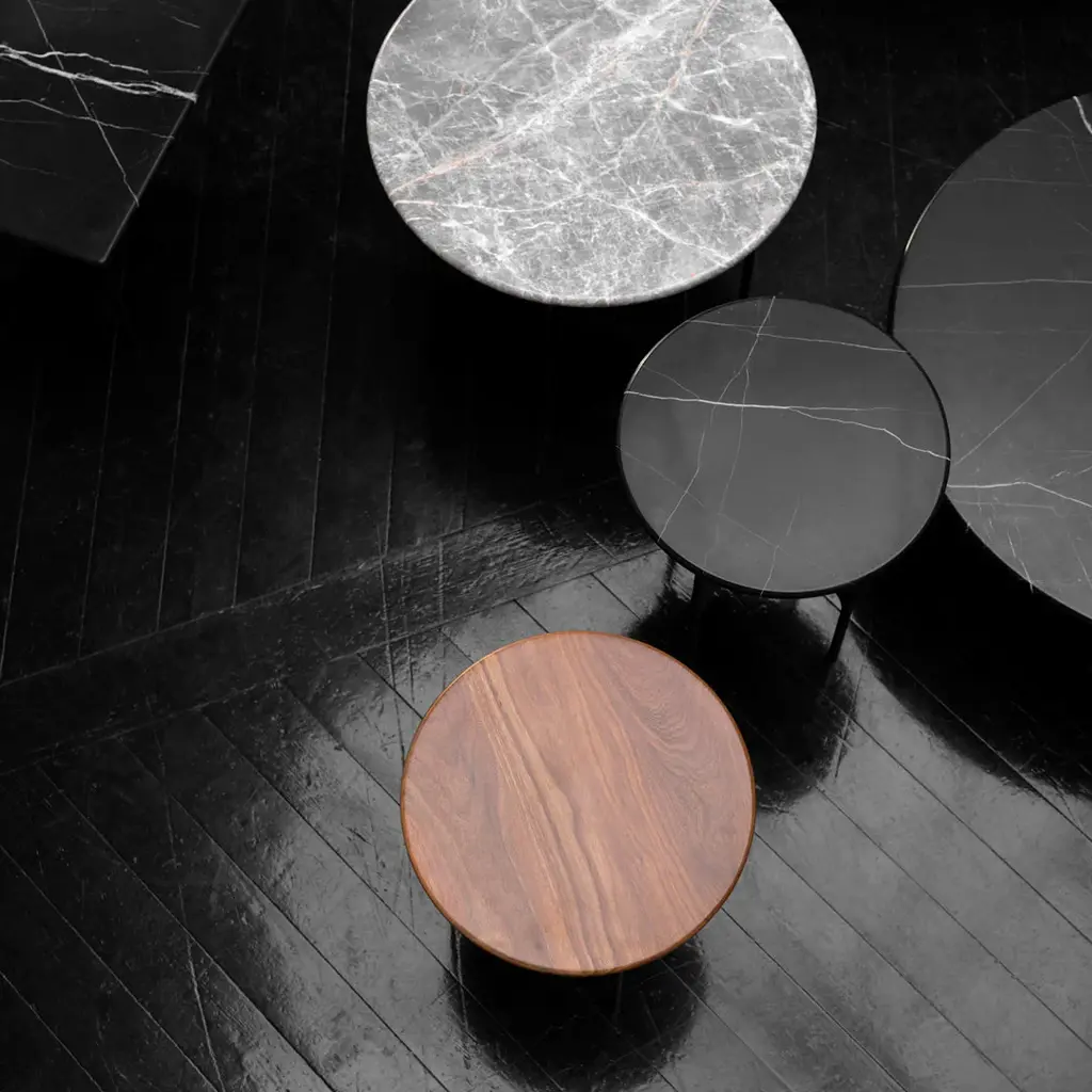 The Floema Side Table, designed by acclaimed Italian designer Luca Nichetto for Wendelbo, reimagines geometric fundamentals through a lens of refined minimalism where absence becomes presence. This sophisticated accent piece is defined by its complete lack of sharp edges and corners, creating a continuous visual flow that embodies welcoming elegance through its gently curved silhouette. The seemingly weightless tabletop appears to float above its delicate black powder-coated steel frame, creating a visual tension that belies the table's exceptional stability. This careful balance between substance and lightness makes the Floema an ideal complement to both structured and organic seating arrangements. The premium material options elevate the Floema beyond mere functionality to become a tactile pleasure point within sophisticated living spaces. Choose between the cool sophistication of exclusive marble, the warm natural character of solid walnut, or the sleek practicality of black laminateeach option carefully selected to enhance the table's sculptural form while providing different sensory experiences that complement various interior palettes. When positioned beside a statement lounge chair in a reading nook, the Floema creates an intimate moment for displaying treasured objects or providing a surface for evening refreshments. In luxurious hospitality settings, multiple Floema tables arranged at varying heights create dynamic compositions that serve both practical and aesthetic functionstransforming transitional spaces into carefully considered design statements. True to Nichetto's design philosophy of blending Scandinavian functionalism with Italian expressiveness, the Floema exemplifies how geometric simplicity, when executed with exceptional attention to proportion and detail, can create furniture that transcends trends to become a timeless element in thoughtfully composed interiors.