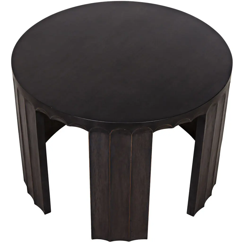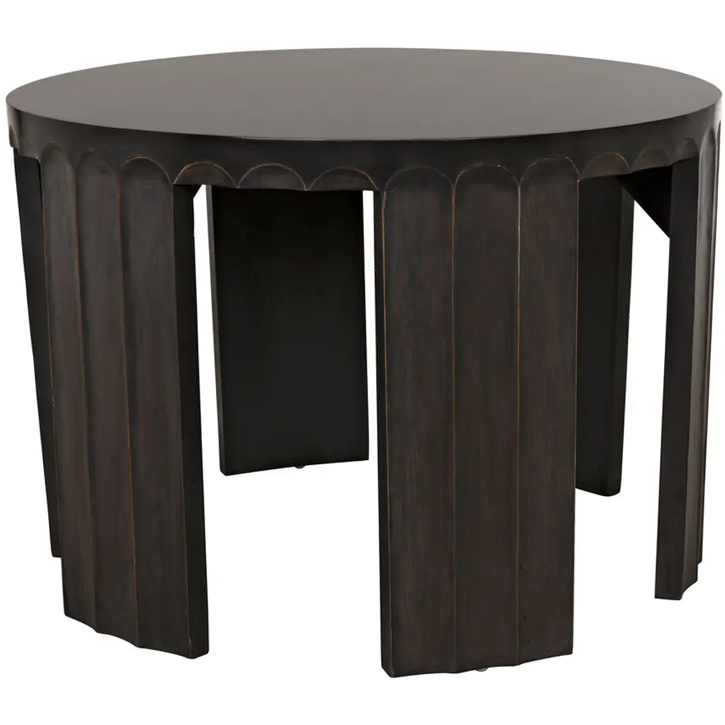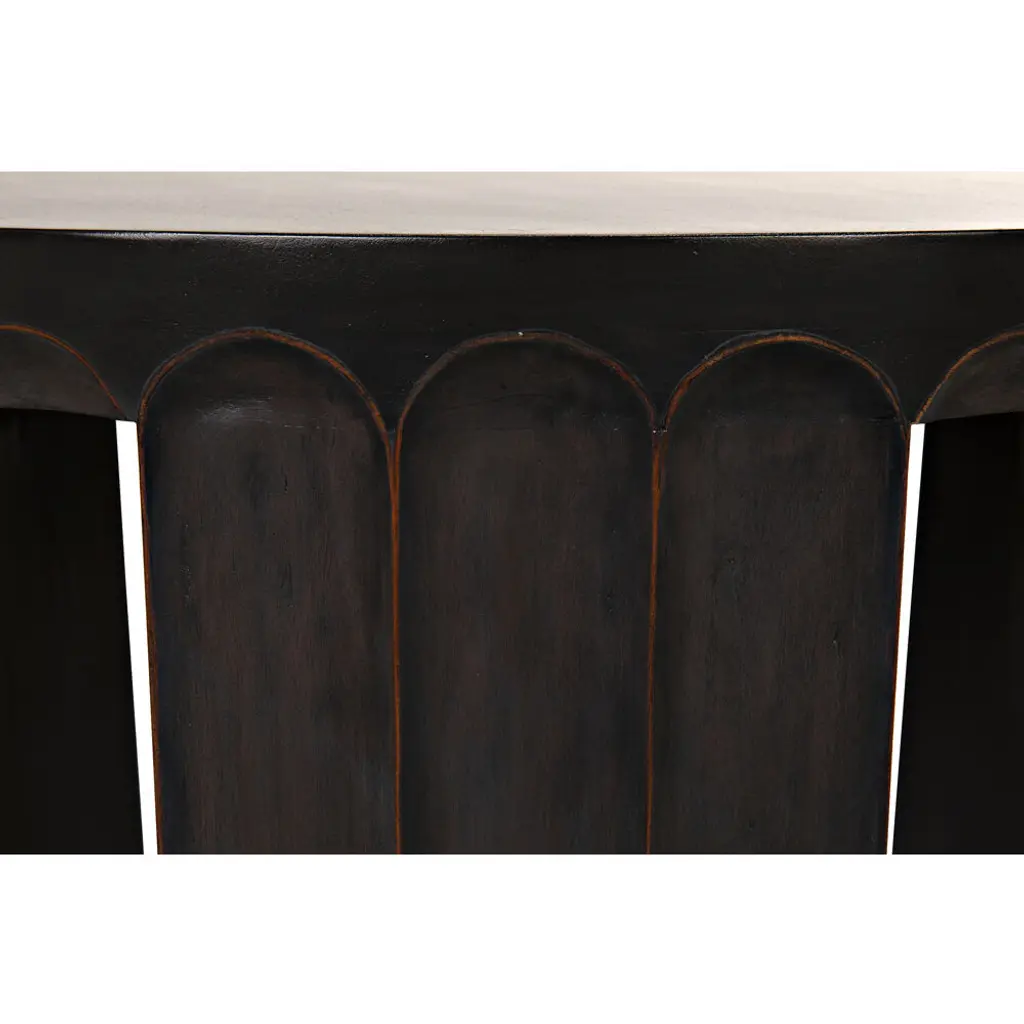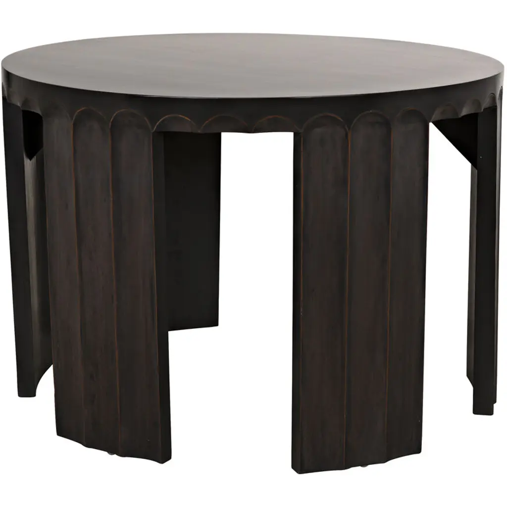 The Fluted accent table collection in mahogany features a classic column structure accented with bold ribbing detail on each of the six legs. The 32-inch top is additionally embellished with hand-carved fluted details. Finally, richly applied layers of Noir's exclusive Pale finish are paired with touches of light brown trim to showcase the beauty of the wood.