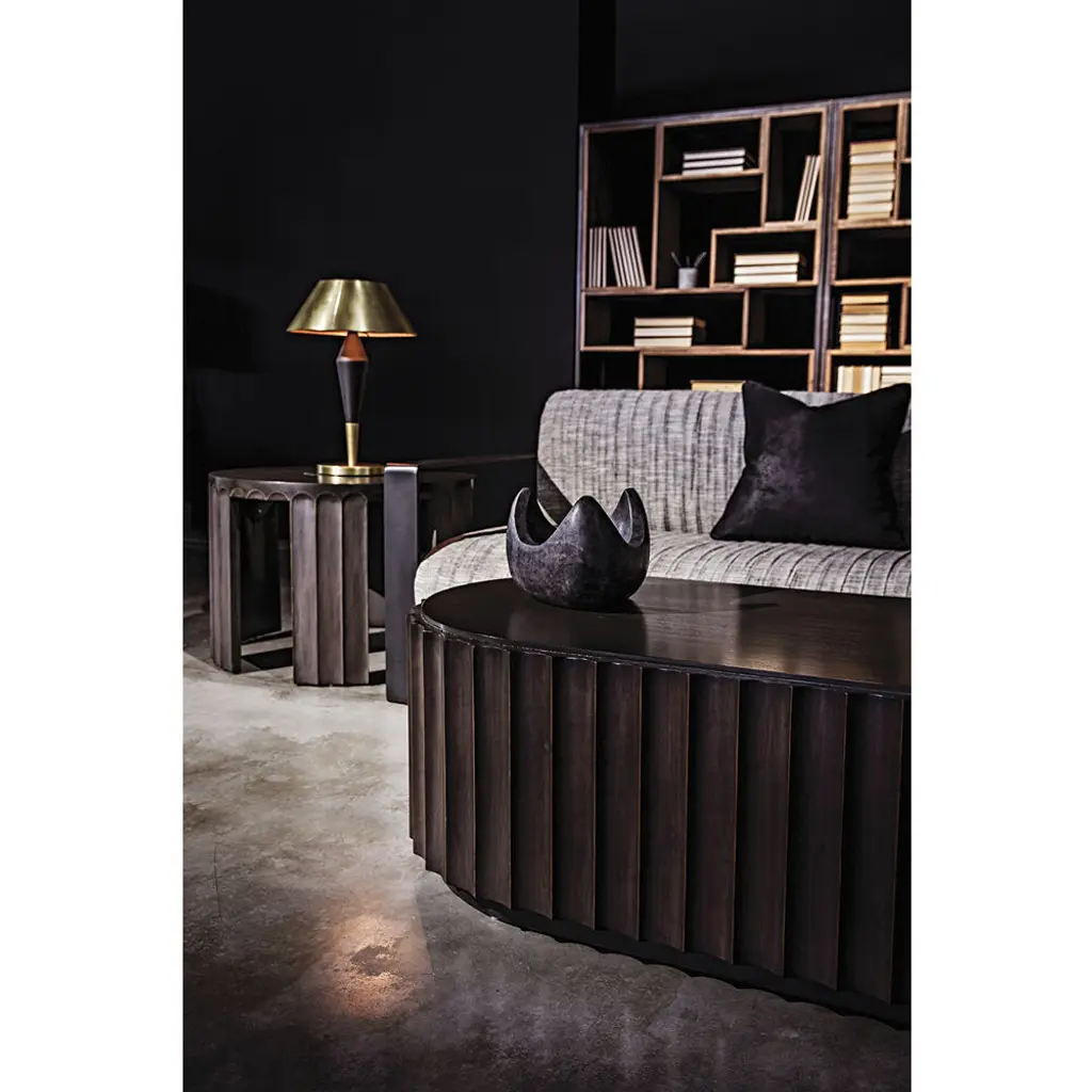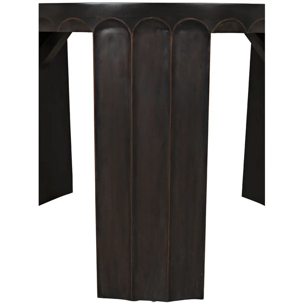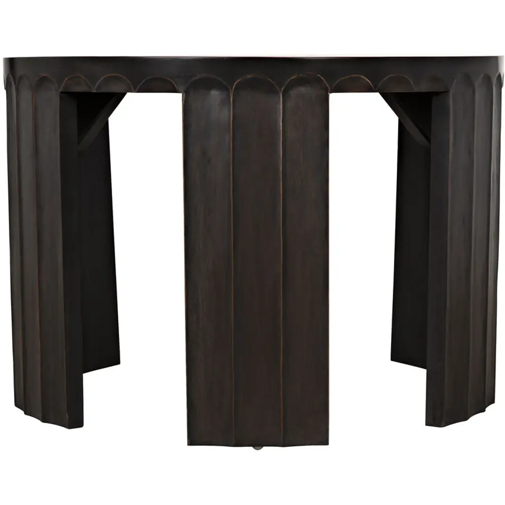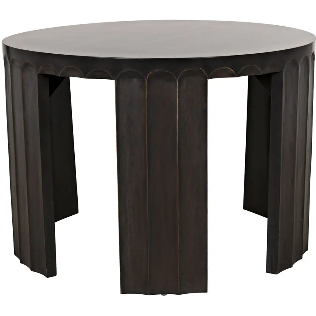 The Fluted accent table collection in mahogany features a classic column structure accented with bold ribbing detail on each of the six legs. The 32-inch top is additionally embellished with hand-carved fluted details. Finally, richly applied layers of Noir's exclusive Pale finish are paired with touches of light brown trim to showcase the beauty of the wood.