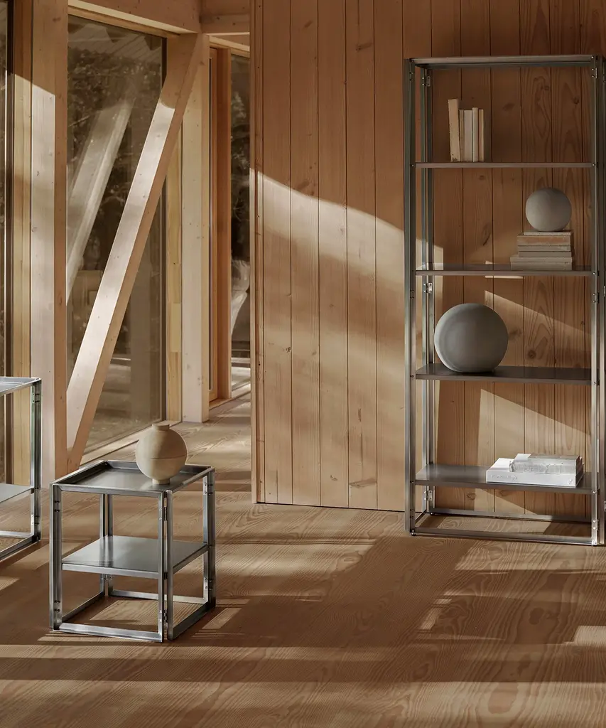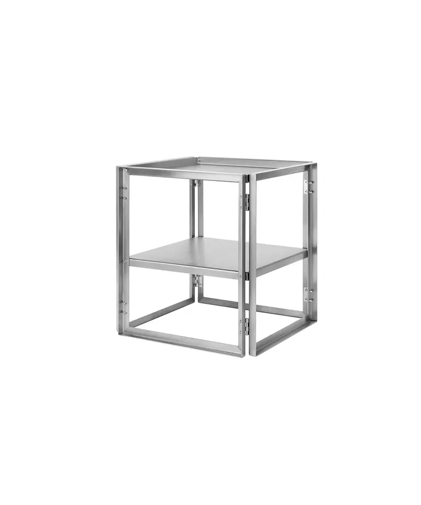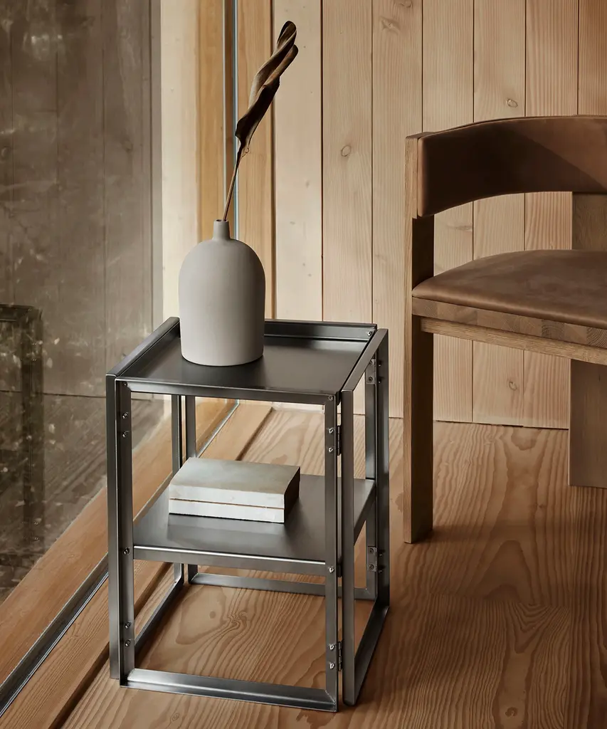 The Side Table in the Foldable Series displays a simple yet sophisticated design. Its tray-like top and lower shelf are integrated into a compact form, combining functionality with contemporary style. Made from brushed stainless steel, the table is durable with an elegant finish. Its minimalist design is enhanced by fine detailing, emphasizing quality and craftsmanship. Versatile enough for various roles as a bedside table, plant stand, or living space addition its adaptable design and foldable feature make it ideal for creative professionals and home office workers seeking efficient, stylish furniture solutions. Designed by Kristina Dam Studio in Copenhagen, Denmark.