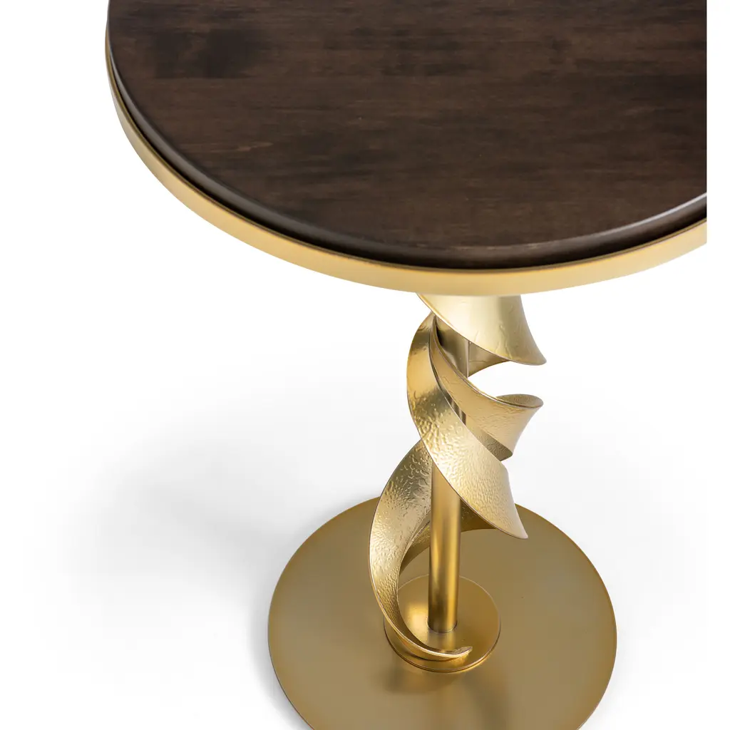 The Folio accent table's hand-forged steel ribbons form a unique design that seem to dance around the pedestal of this beautiful table, while its maple wood top adds a timeless elegance. Make an unforgettable statement of style and grace. Maple wood available in natural maple, espresso or dark grey options.