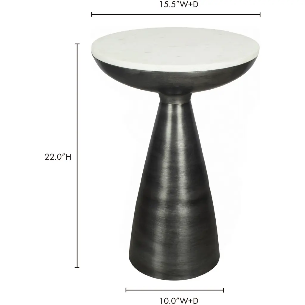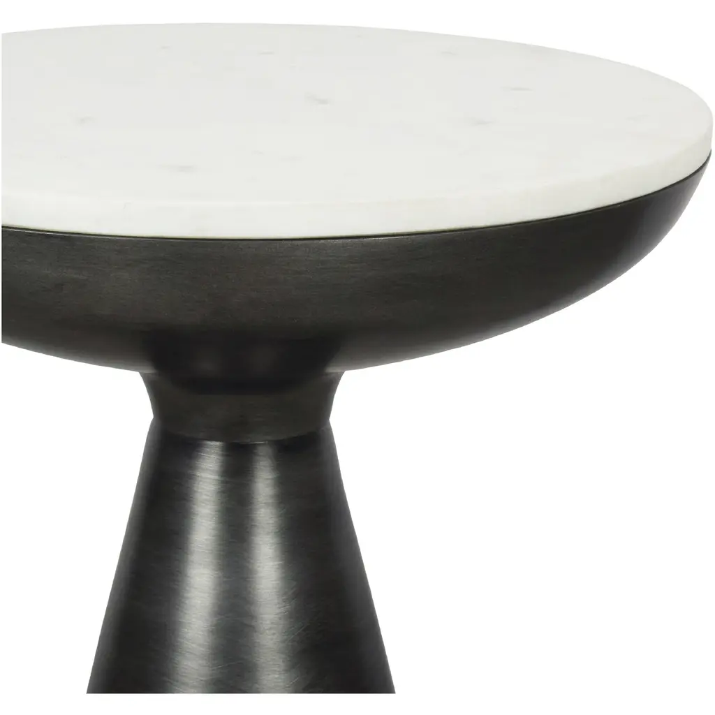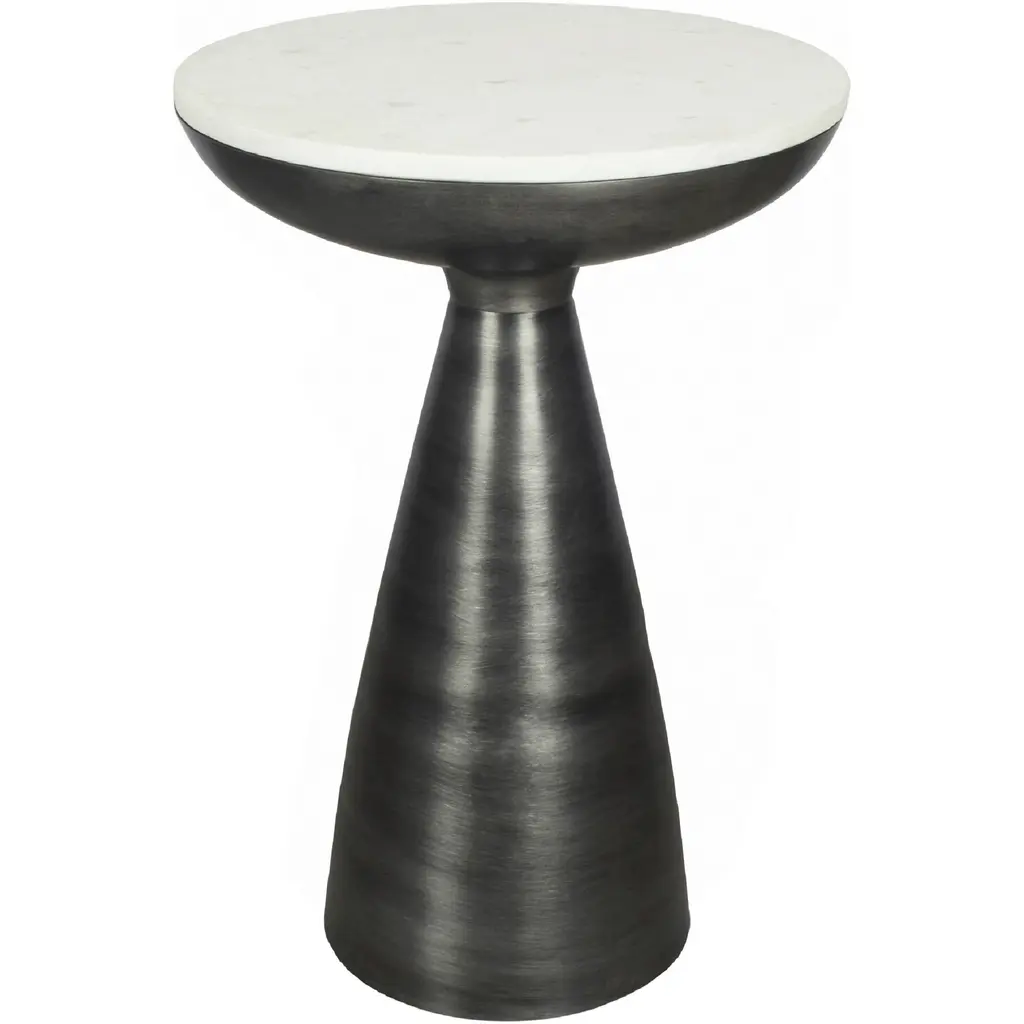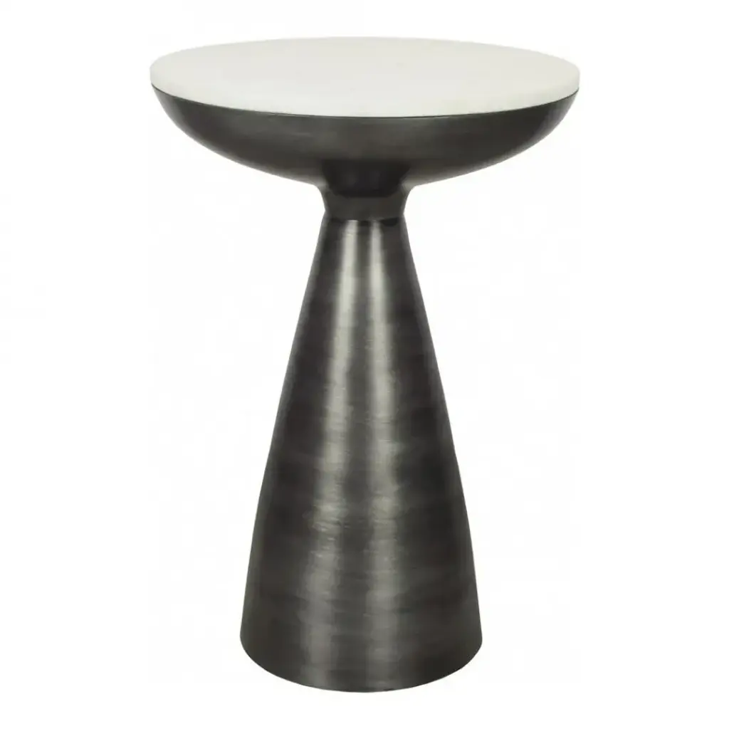 The Font side table is unquestionably elegant and bold. This contemporary modern accent table is cast in aluminum with a raw finish. The Font side table's look is finished with a beautiful white marble top, adding the subtle touch of class to your home.