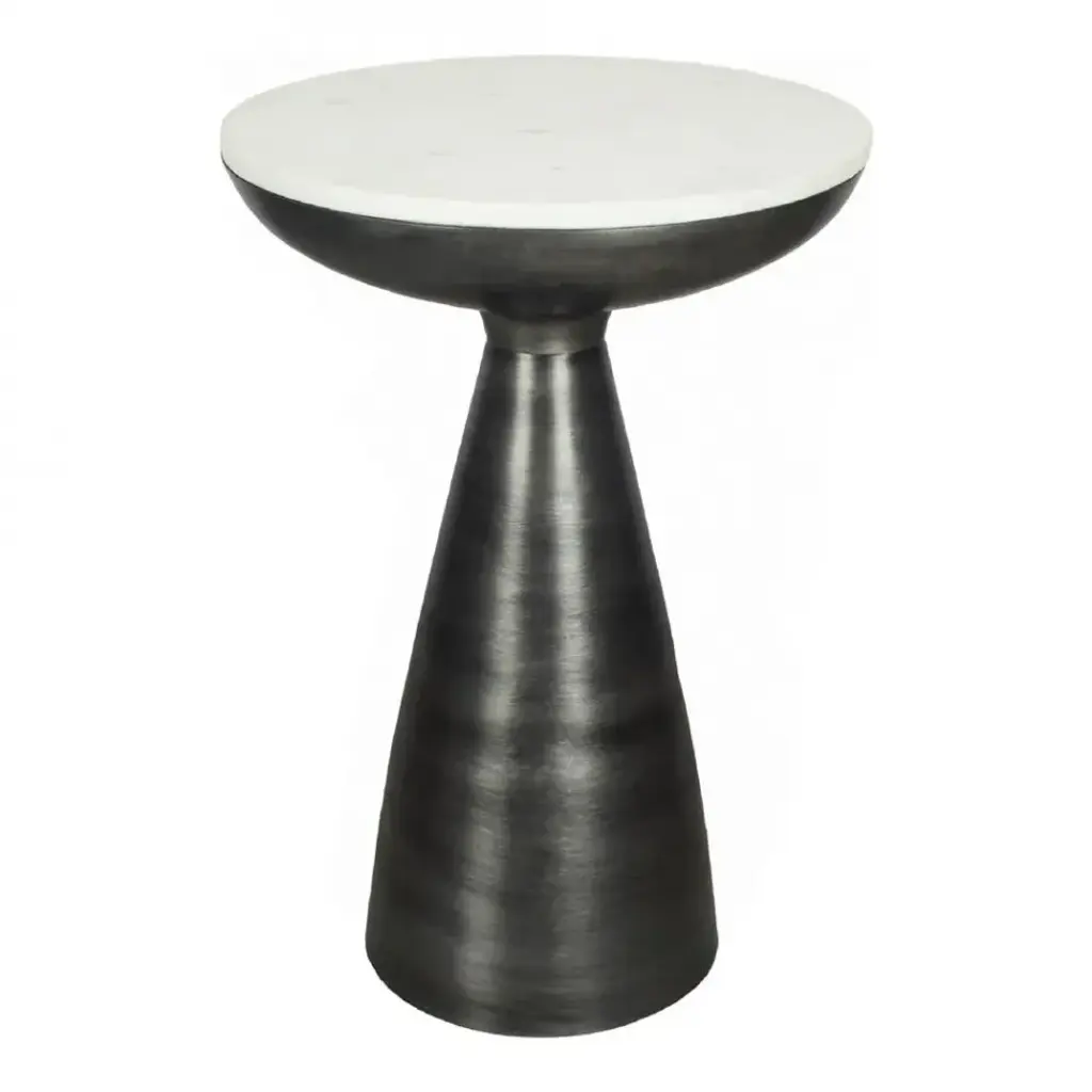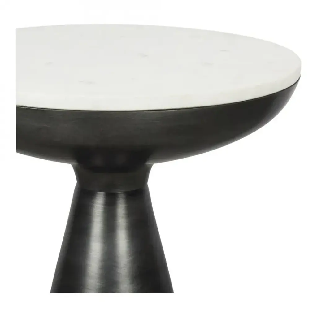 The Font side table is unquestionably elegant and bold. This contemporary modern accent table is cast in aluminum with a raw finish. The Font side table's look is finished with a beautiful white marble top, adding the subtle touch of class to your home.