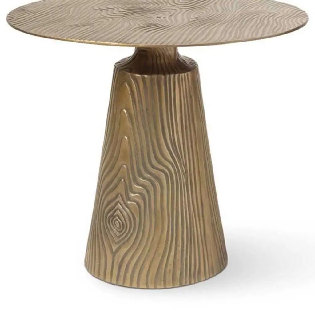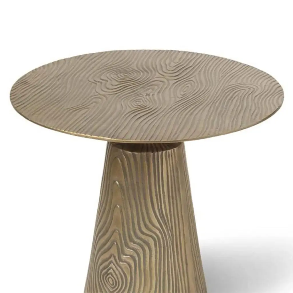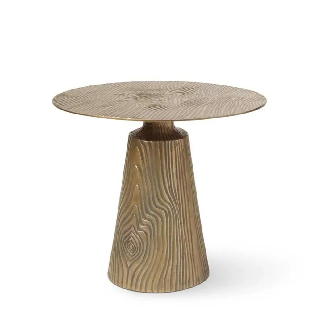 Side Table Forest with metal structure in vintage brass finishand with wood veins pattern.
