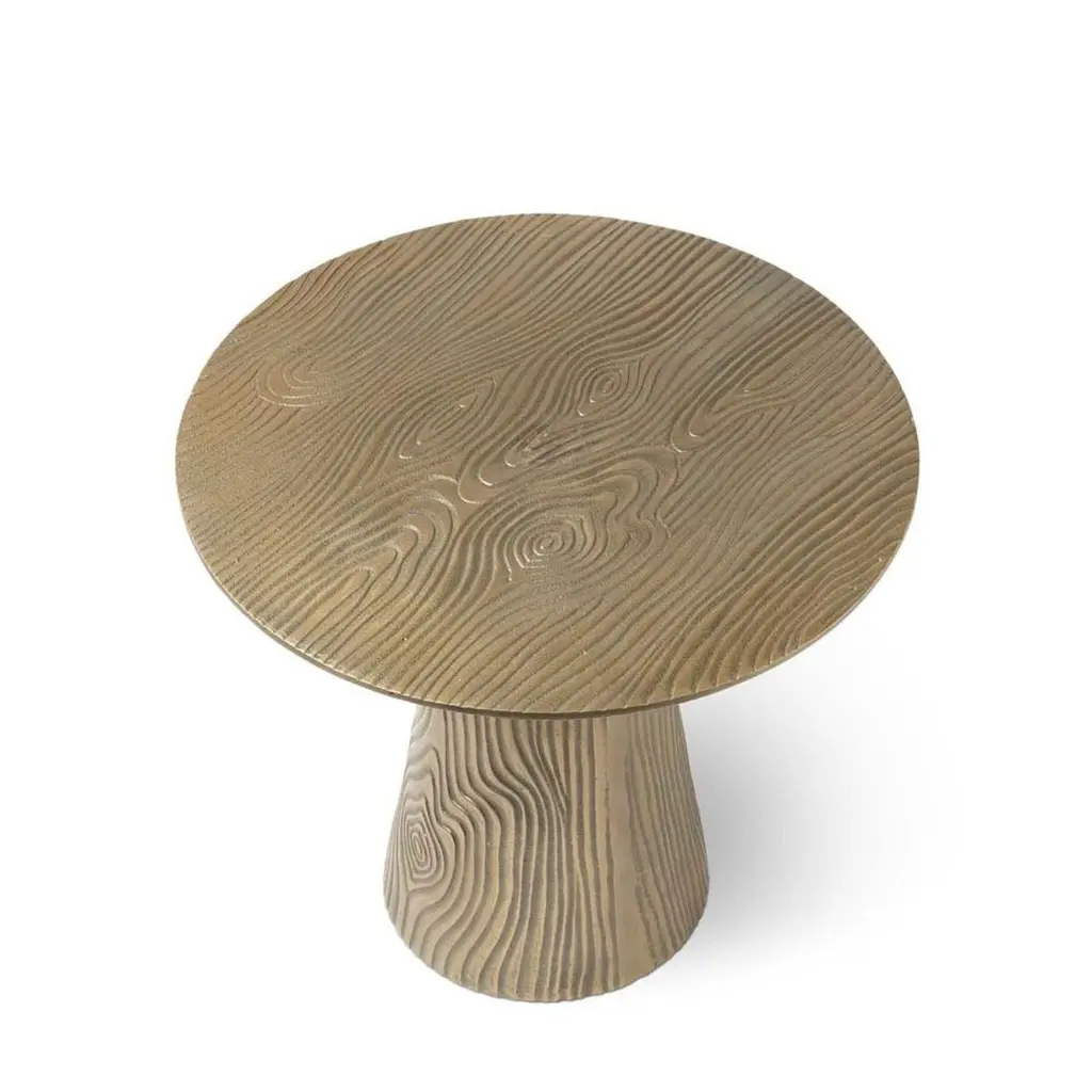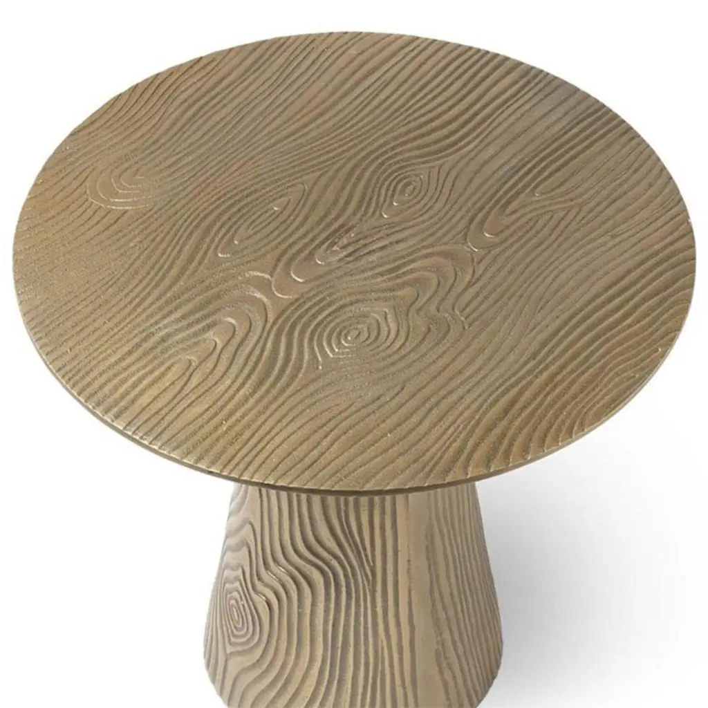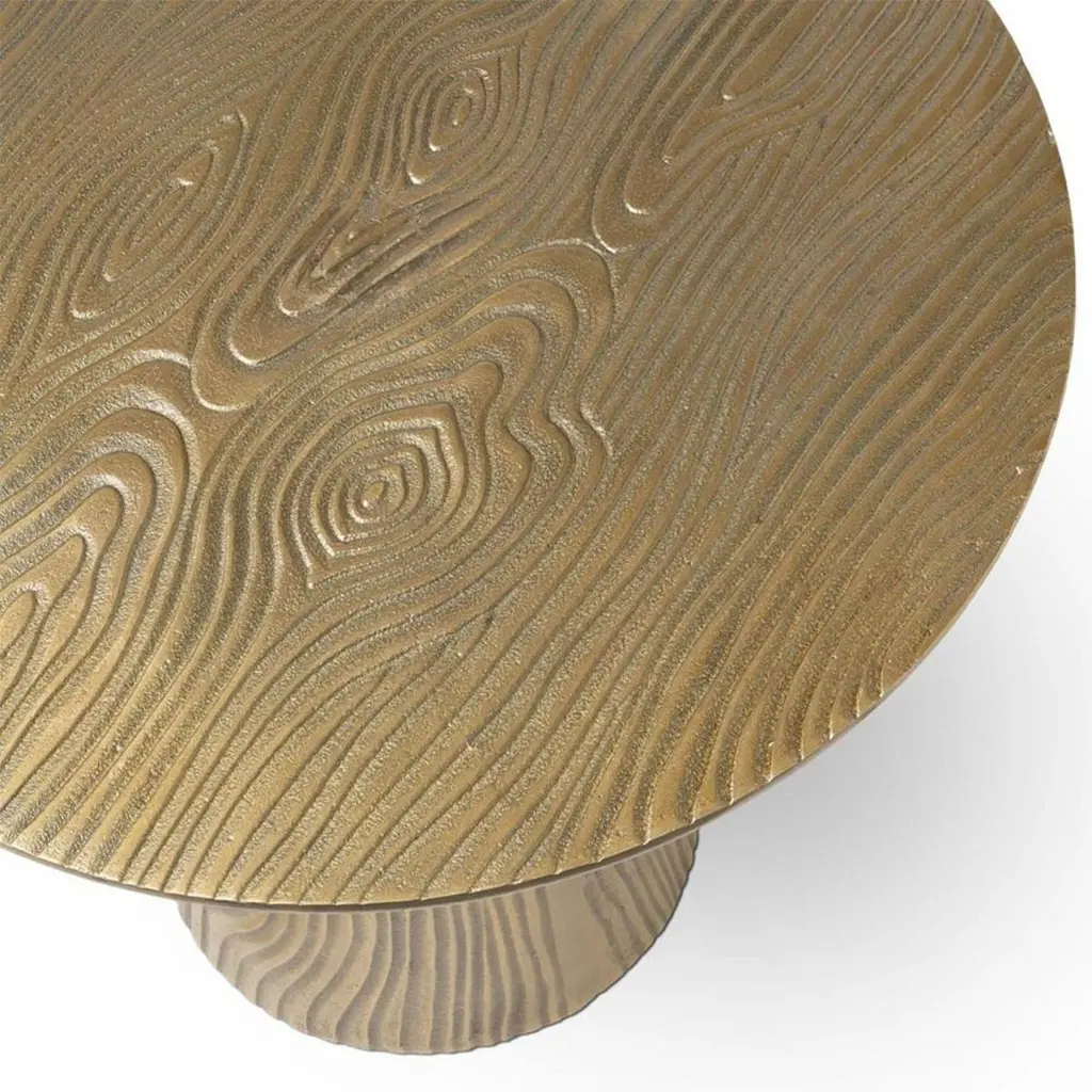 Side Table Forest with metal structure in vintage brass finishand with wood veins pattern.