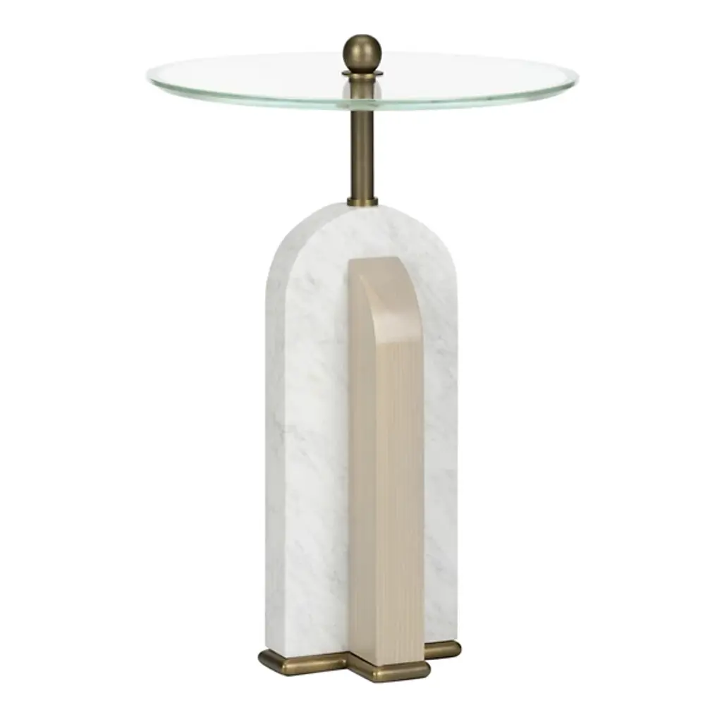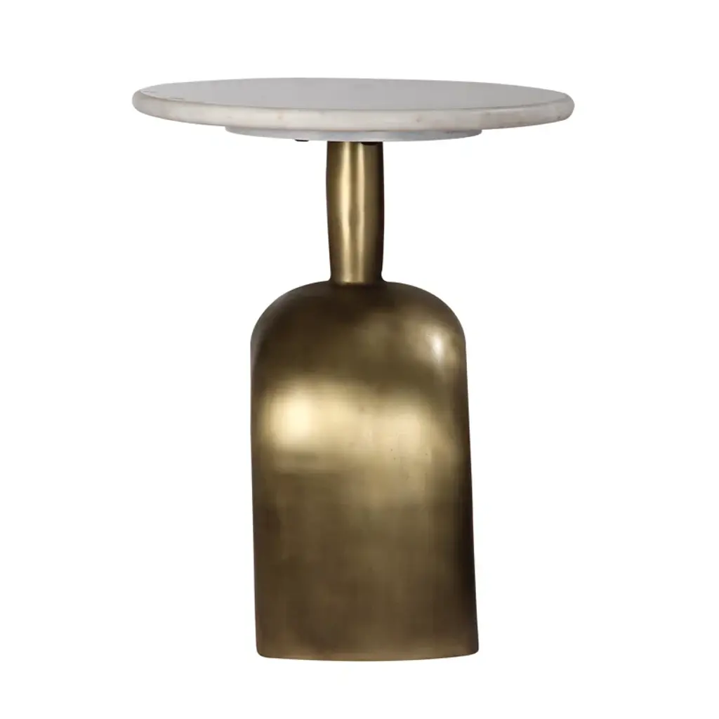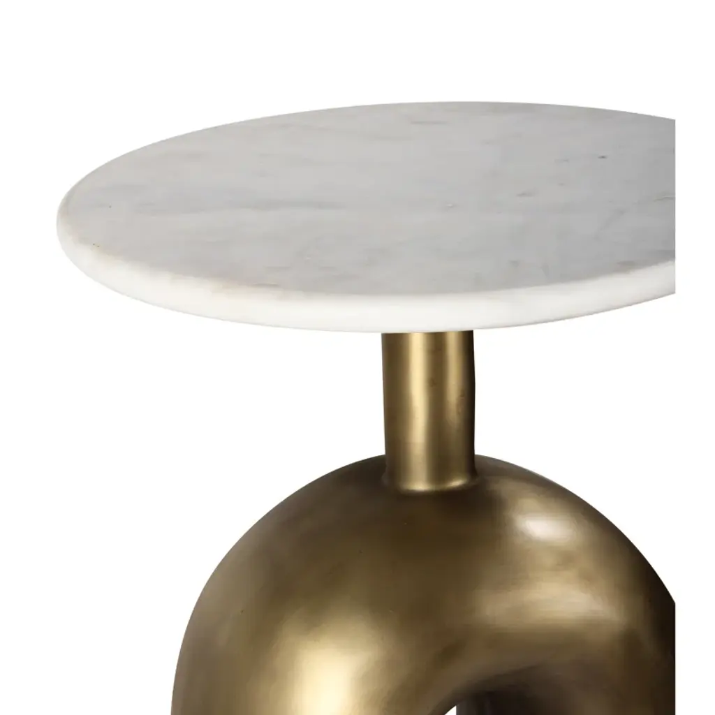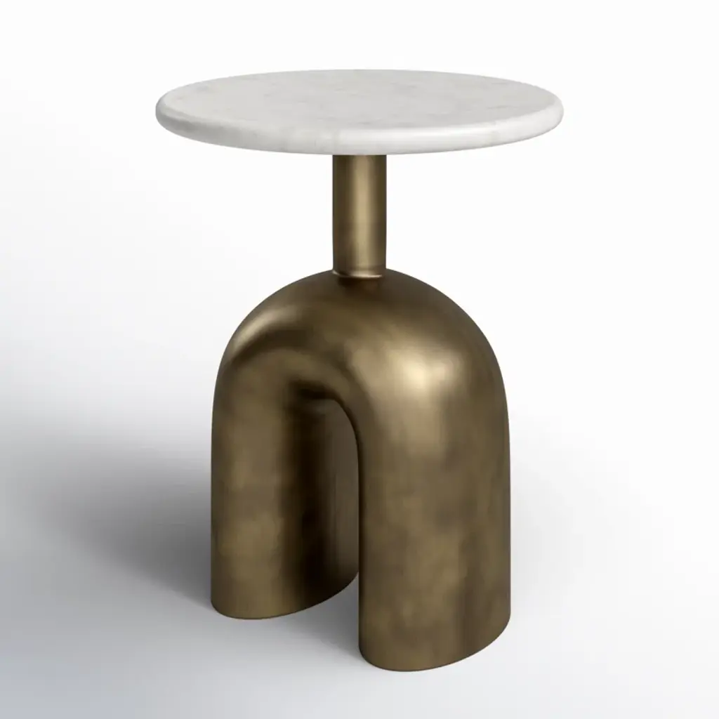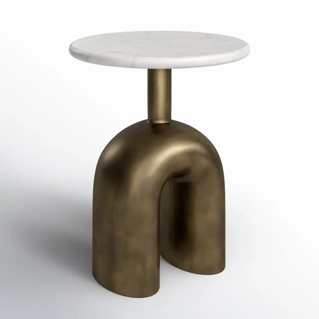 The fork side table features a sculptural, arched base that gracefully supports a solid, white marble table top. Pulled up next to a sofa, or used at a bedside, this table is a perfect companion to any living space.