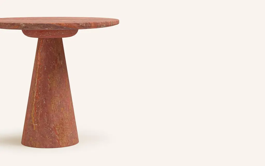 Form(la) Cono Round Side Table 18”l X 18”w X 21”h Travertino Rosso Vc