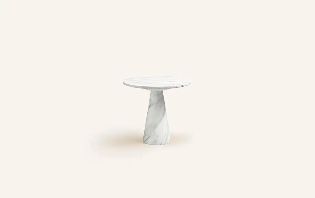 Form(la) Cono Round Side Table 24”l X 24”w X 21”h Volakas White Marble