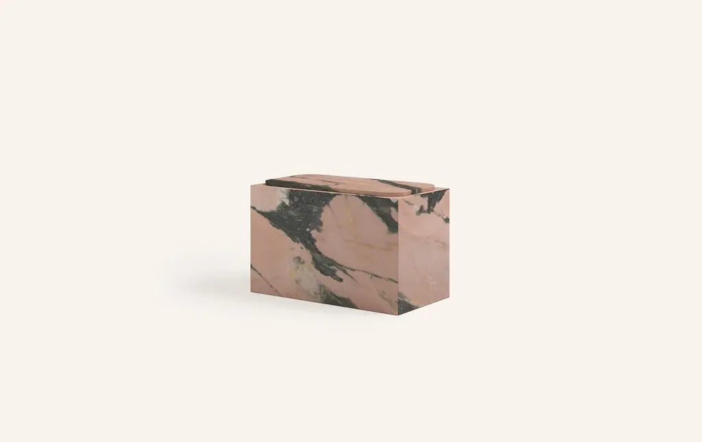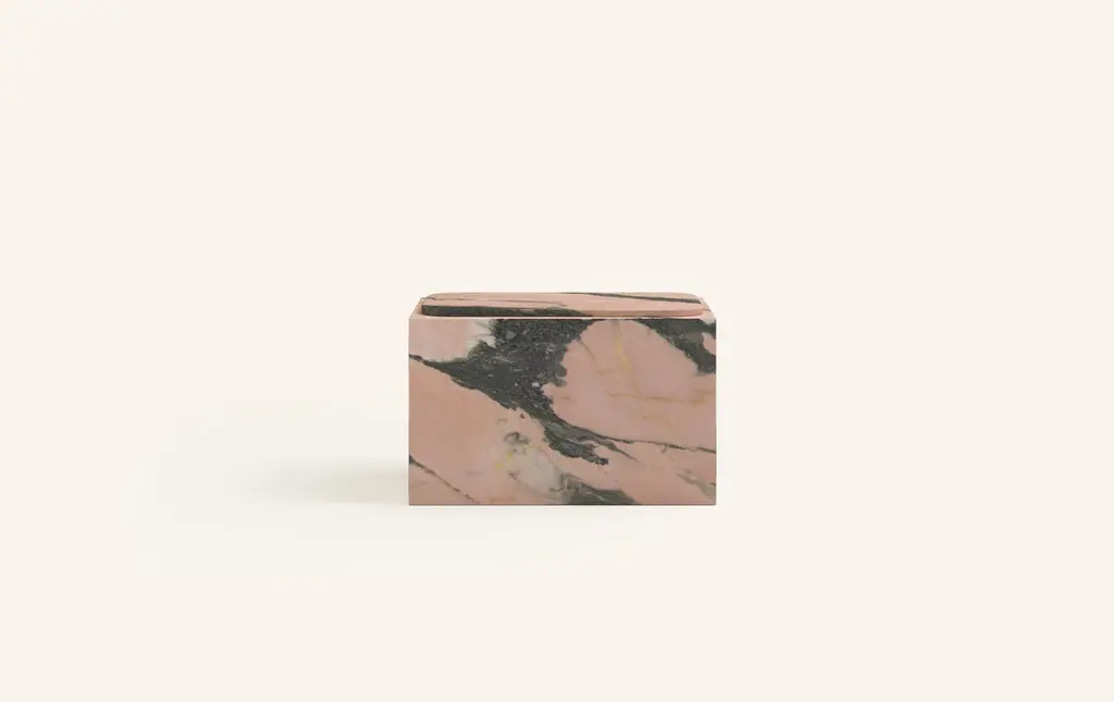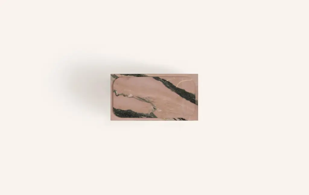 Form(la) Cubo Rectangle Side Table 30”l X 16"w X 19”h Portogallo Rosa Marble