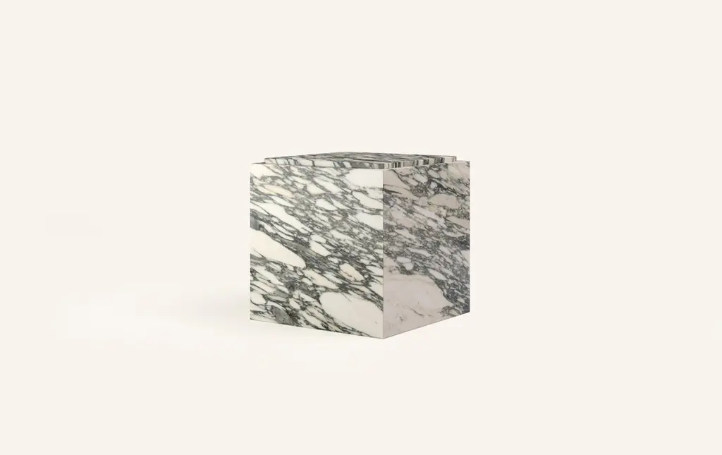 Form(la) Cubo Square Side Table 18”l X 18"w X 19”h Arabescato Corchia Marble