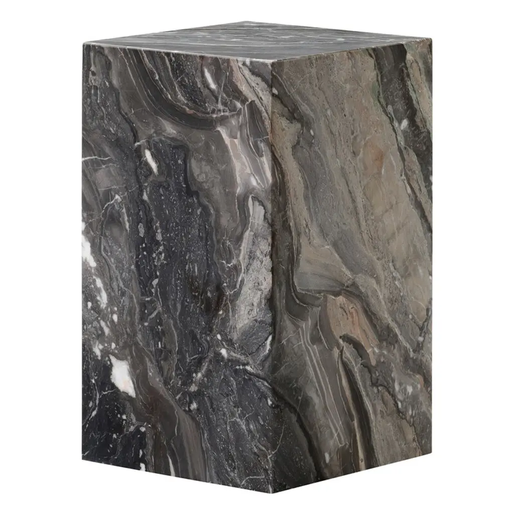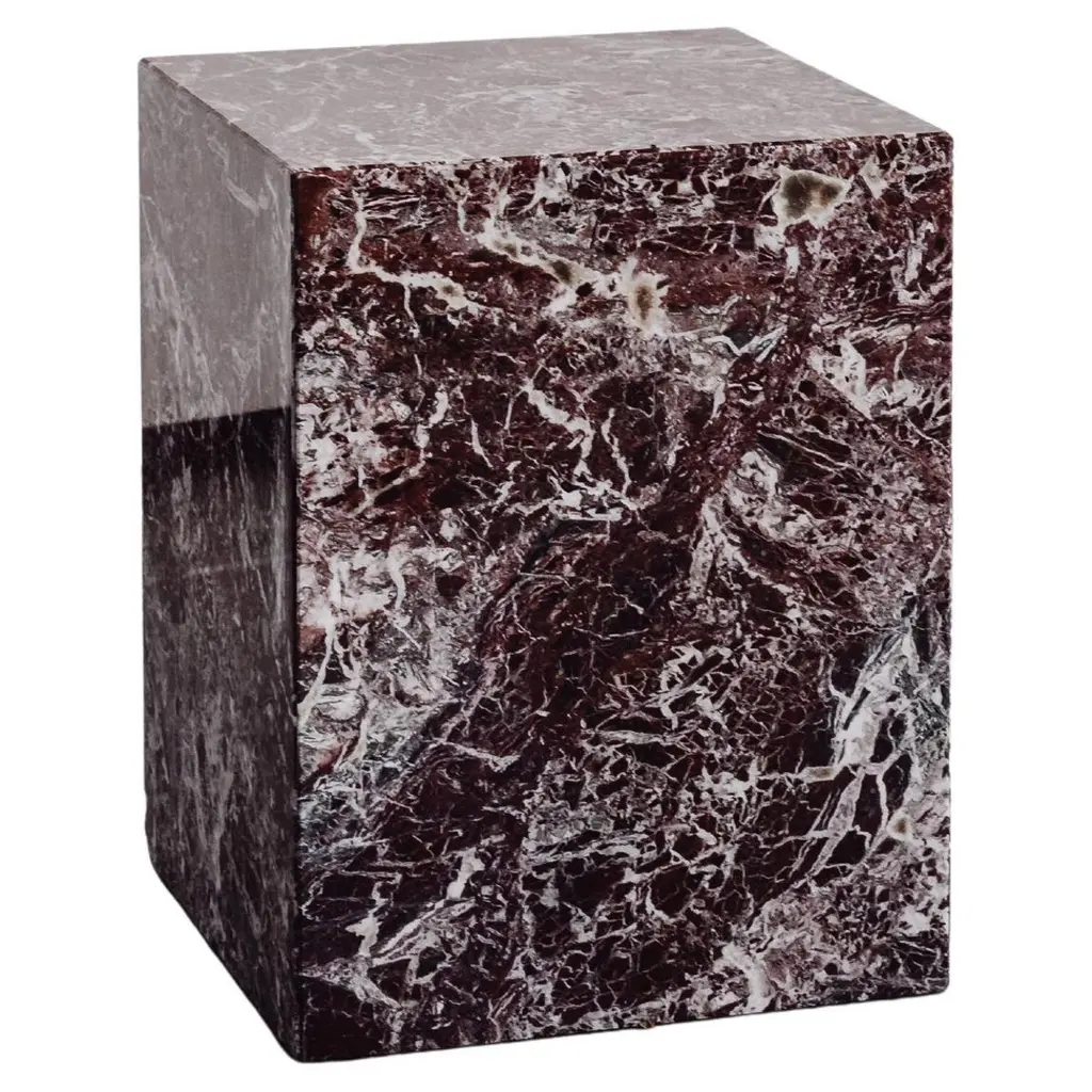 MONOLITHIC FORMS SOFTENED BY GENTLE EDGES. WITH ITS BOLD MARBLE PATTERNS CUBO IS AS VERSATILE AS IT IS STRIKING.DIMENSIONS:18”L x 18”W x 19”H: - 3/4" TABLETOP WITH WITH 3" RADIUS CORNERS - TOP 1" OFFSET FROM SIDE OF TABLECONSTRUCTION:- 3/4" THICK TOP & BASE- HOLLOW CONSTRUCTION USING 3/4” STONE SLAB- FELT LINING TO BOTTOM OF BASE FOR FLOOR PROTECTIONWEIGHT:18”L x 18”W x 19”H: - GROSS WEIGHT INCLUDING WOOD CRATE 192LBS