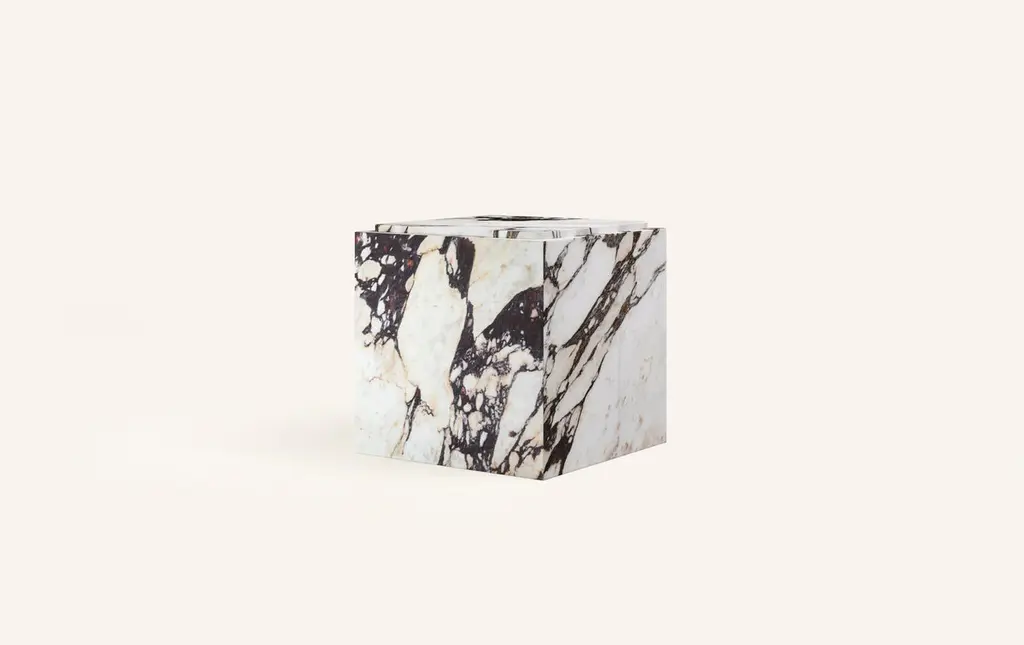 Form(la) Cubo Square Side Table 18”l X 18"w X 19”h Calacatta Viola Marble