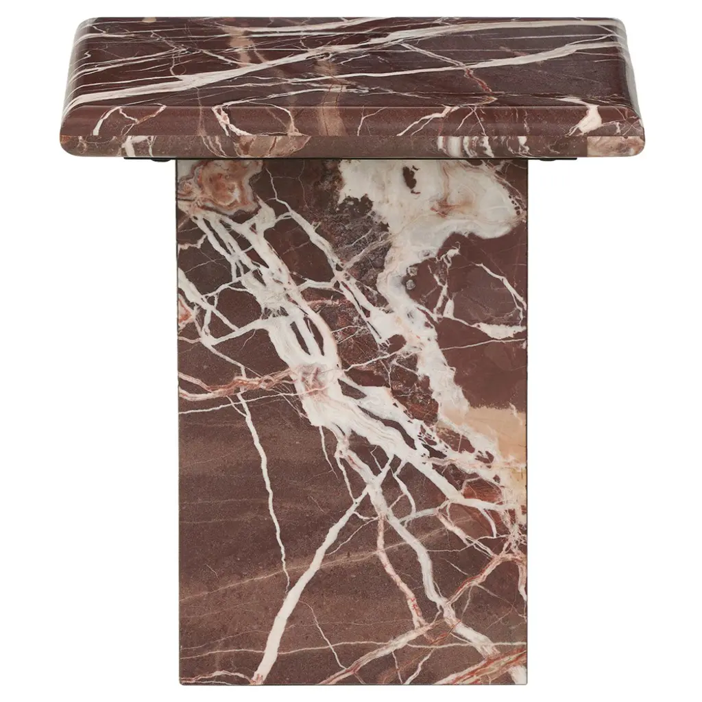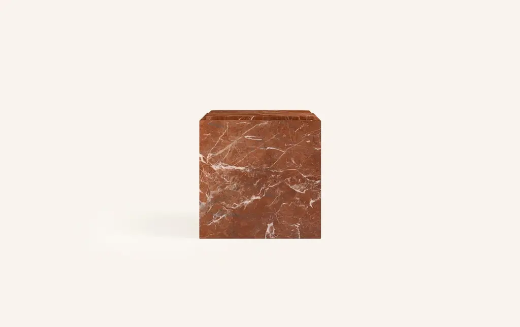 Form(la) Cubo Square Side Table 18”l X 18"w X 19”h Rojo Alicante Marble