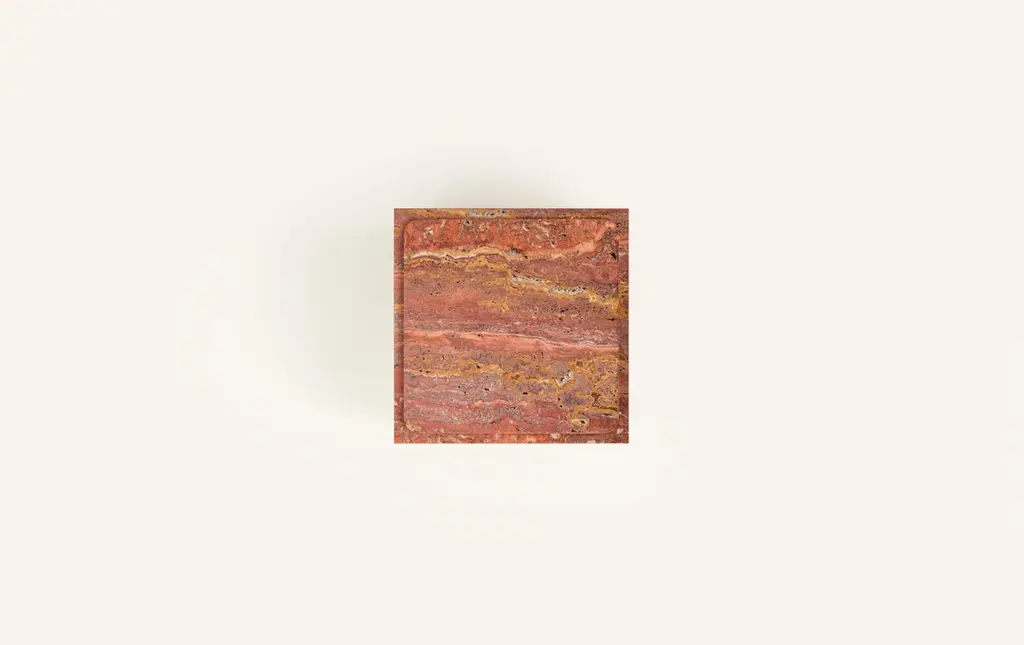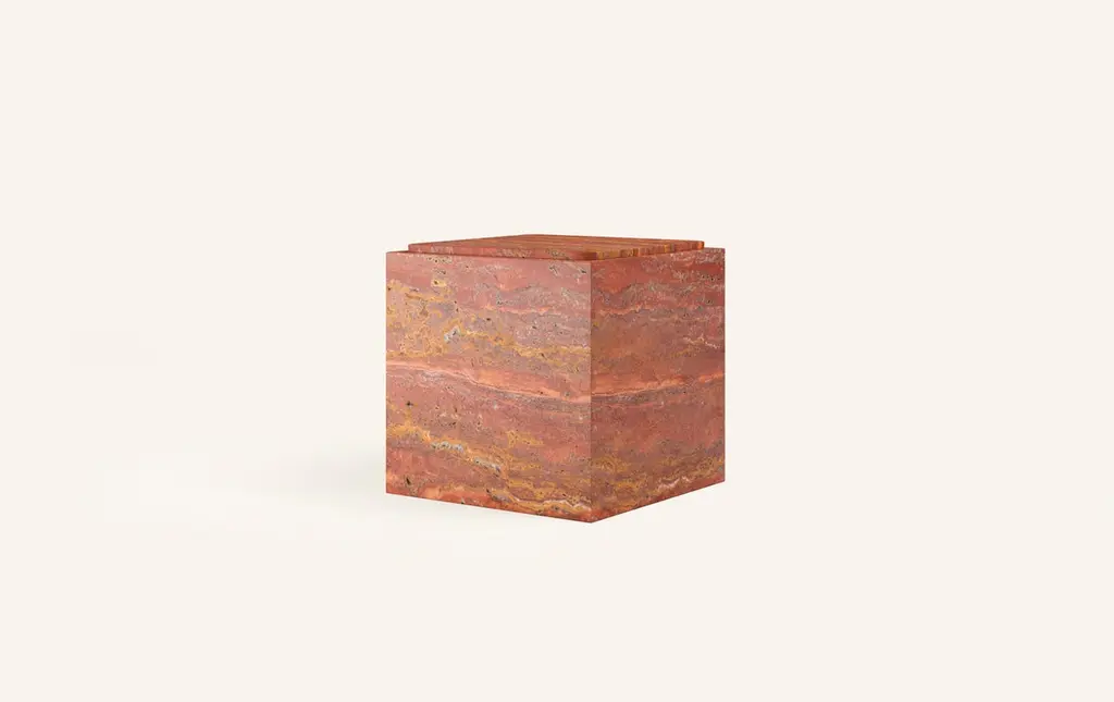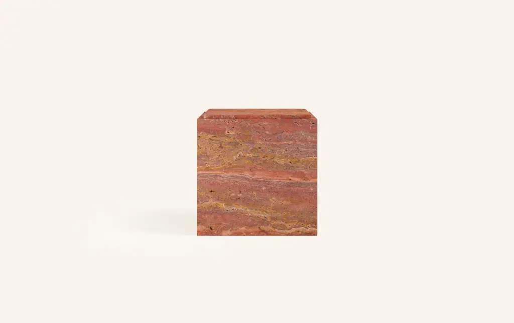 Form(la) Cubo Square Side Table 22”l X 22"w X 22”h Travertino Rosso Vc