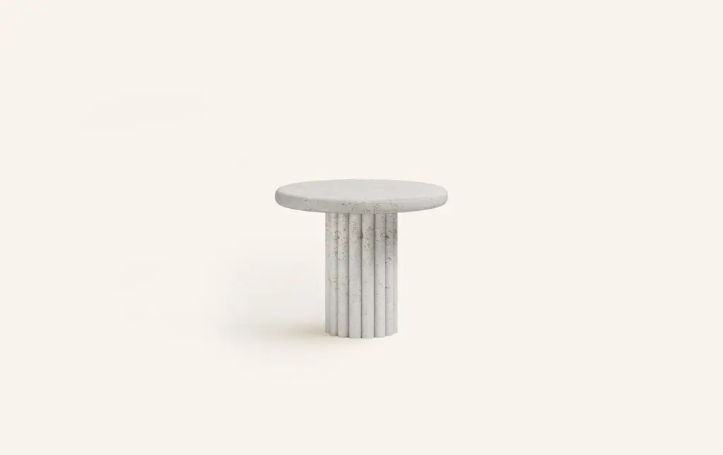 Form(la) Fluta Round Side Table 24”l X 24”w X 20”h Limestone Oceano