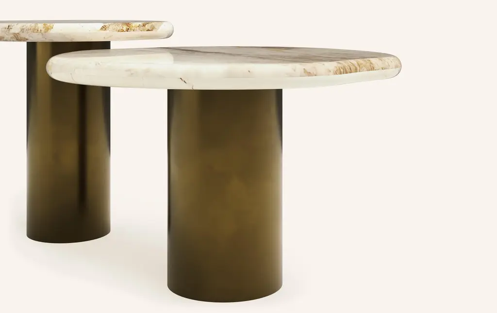 ‘LAGO’, ITALIAN FOR ‘LAKE’, HAS INSPIRED A FORM DERIVED FROM NATURE, TEXTURED WITH LUXURIOUS STONES AND METALS. THE COLLECTION ENCOURAGES NESTING AND LAYERING IN ITS AVAILABLE FORMS.DIMENSIONS: (SIDE TABLES SOLD INDIVIDUALLY): 18”L x 18”W x 18”H: - 7"Ø ROUND BASE- 8"Ø CUTOUT ON UNDERSIDE OF TABLE TOPCONSTRUCTION:TABLE TOP: - 3/4”x 2 SLABS WITH FULL BULLNOSE EDGE- HOLE(S) IN TABLE TOP INTERLOCKS WITH BASE OF TABLEBASE:- SOLID STONE CONSTRUCTION OR 304 STAINLESS STEEL WITH ANTIQUE BRONZE FINISH- FELT LINING TO BOTTOM OF BASE FOR FLOOR PROTECTIONWEIGHT:18”L x 18”W x 18”H WITH ANTIQUE BRONZE LEGS: - GROSS WEIGHT INCLUDING WOOD CRATE 196LBS