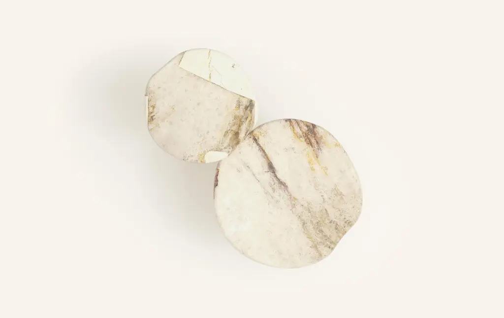 ‘LAGO’, ITALIAN FOR ‘LAKE’, HAS INSPIRED A FORM DERIVED FROM NATURE, TEXTURED WITH LUXURIOUS STONES AND METALS. THE COLLECTION ENCOURAGES NESTING AND LAYERING IN ITS AVAILABLE FORMS.DIMENSIONS: (SIDE TABLES SOLD INDIVIDUALLY): 24”L x 24”W x 16”H: - 8"Ø ROUND BASE- 9"Ø CUTOUT ON UNDERSIDE OF TABLE TOPCONSTRUCTION:TABLE TOP: - 3/4”x 2 SLABS WITH FULL BULLNOSE EDGE- HOLE(S) IN TABLE TOP INTERLOCKS WITH BASE OF TABLEBASE:- SOLID STONE CONSTRUCTION OR 304 STAINLESS STEEL WITH ANTIQUE BRONZE FINISH- FELT LINING TO BOTTOM OF BASE FOR FLOOR PROTECTIONWEIGHT:24”L x 24”W x 16”H WITH ANTIQUE BRONZE LEGS:- GROSS WEIGHT INCLUDING WOOD CRATE 243LBS