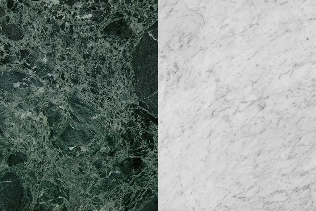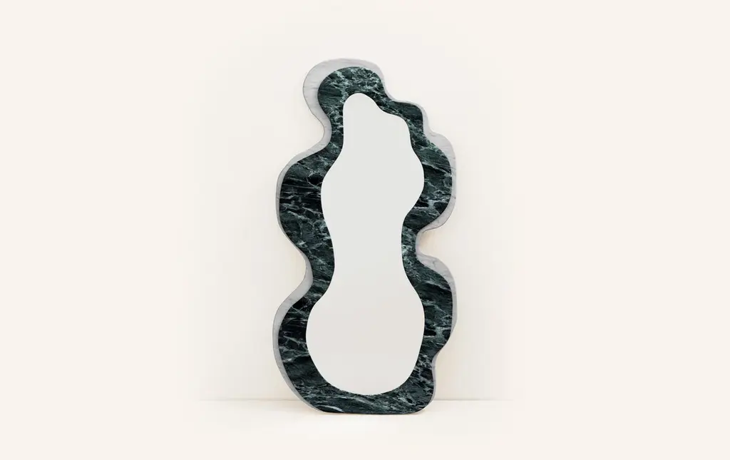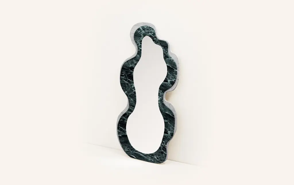 Form(la) Onda Floor Mirror 78”h X 42”w X 1.5”d Verde Alpi & Carrara Marble