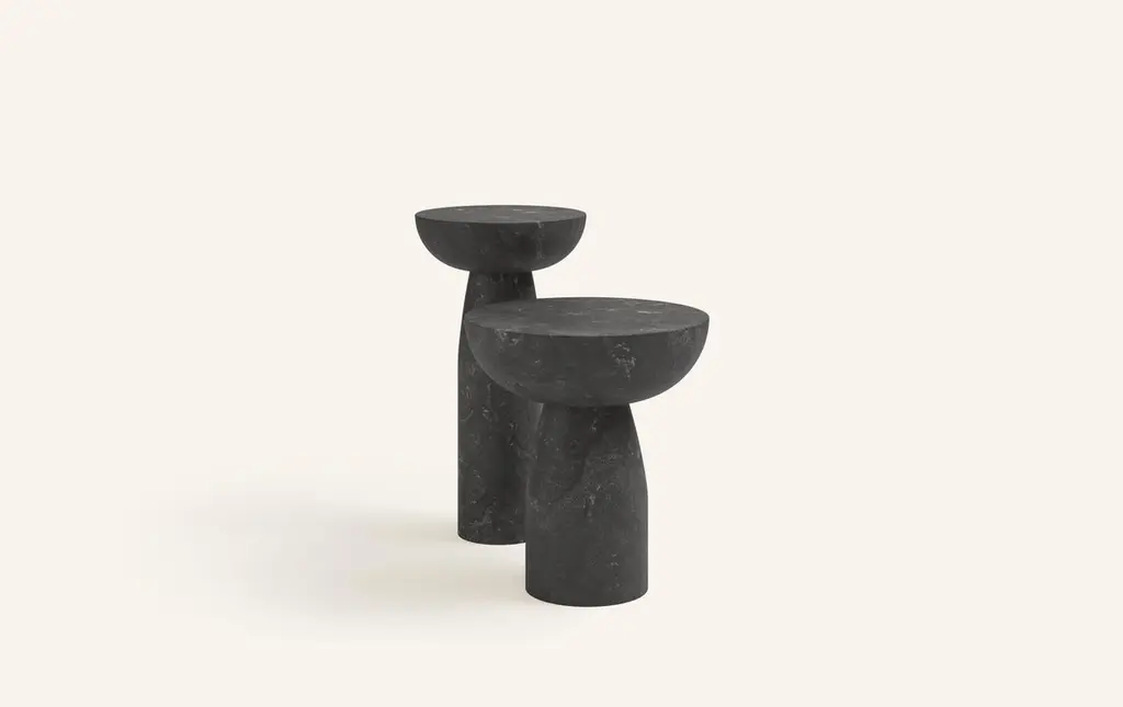 A SLICE OF A ’SPHERE’ OR 'SFERA' IN ITALIAN BALANCES A FLAT SURFACE ATOP AND ROBUST MONOLITH FORM. WITH A BASE SOFTENED BY A CURVED PROFILE, SFERA IS SOFT AND EARTHY IN ITS AVAILABLE STONE SELECTIONS.DIMENSIONS: (SIDE TABLES SOLD INDIVIDUALLY):14”L x 14”W x 26”H: - 4.5” THICK SOLID TABLE TOP- 7”Ø SOLID BASECONSTRUCTION:- SOLID THICK TABLE TOP WITH DEMI-BULLNOSE EDGE- CARVED FROM A SINGLE SOLID BLOCK OF STONE- FELT LINING TO BOTTOM OF BASE FOR FLOOR PROTECTIONWEIGHT:14”L x 14”W x 26”H: - GROSS WEIGHT INCLUDING WOOD CRATE 208LBS