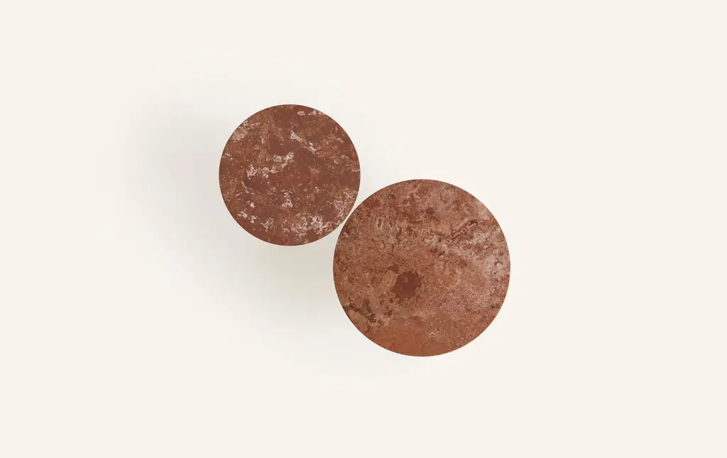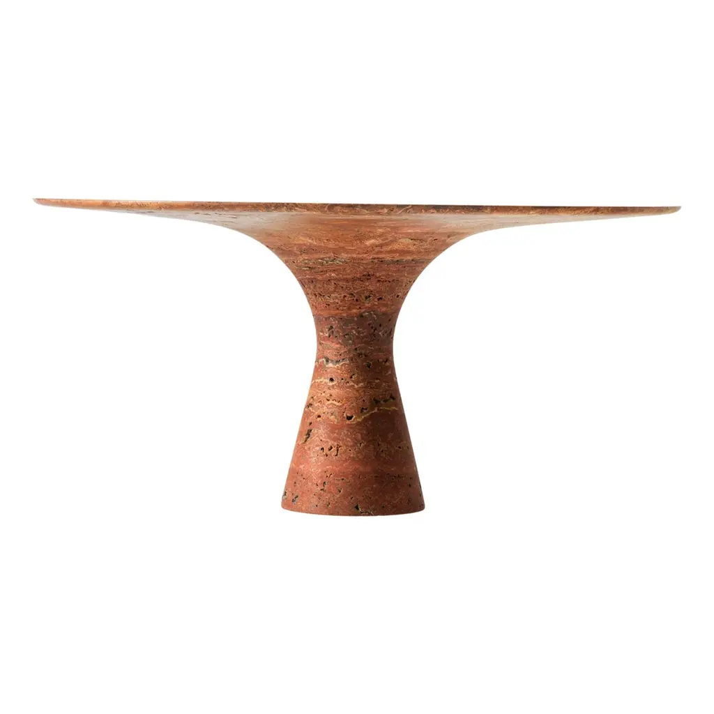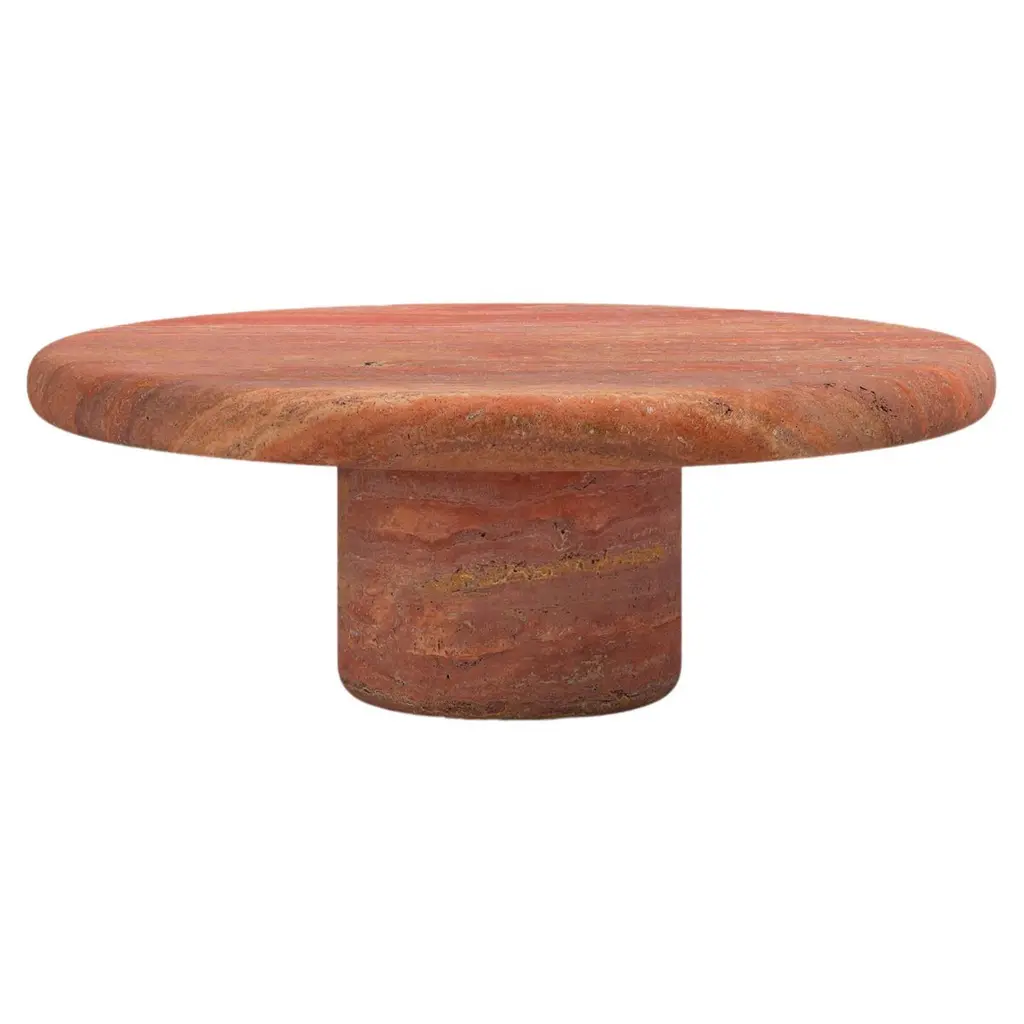 Form(la) Sfera Round Side Table 14”l X 14”w X 26”h Travertino Rosso Vc
