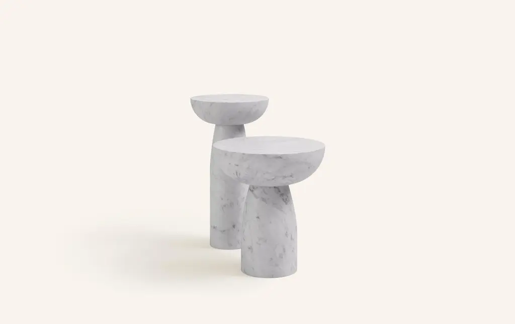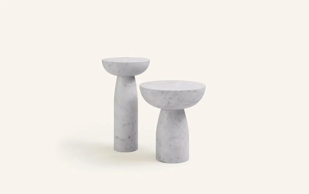 Form(la) Sfera Round Side Table 18”l X 18”w X 20”h Carrara Bianco Marble