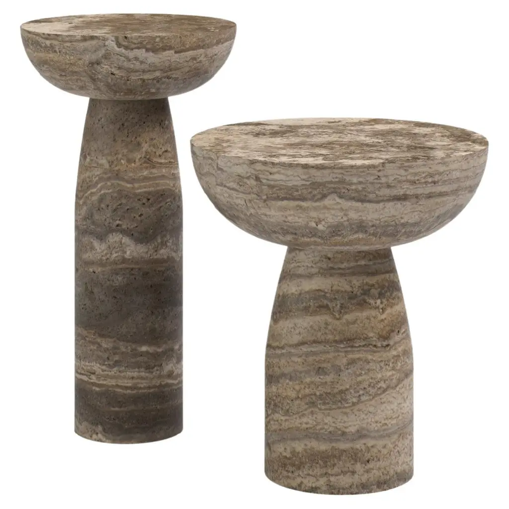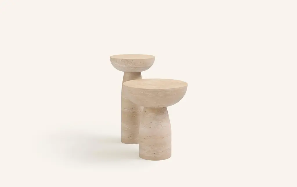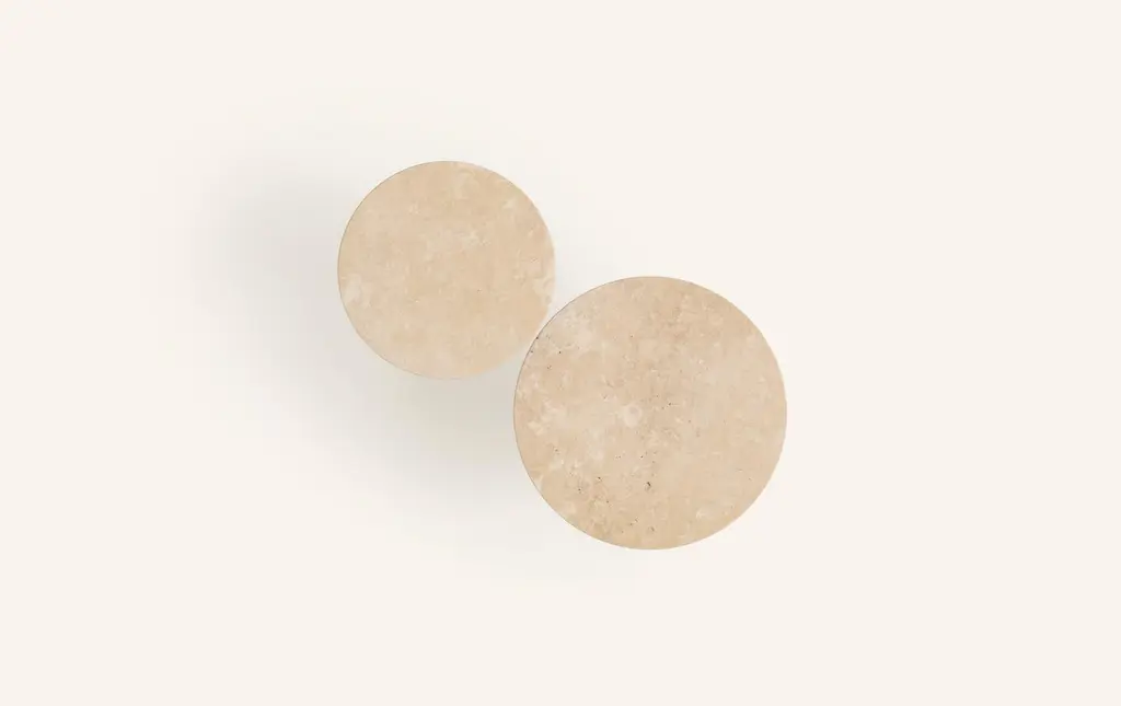 Form(la) Sfera Round Side Table 18”l X 18”w X 20”h Travertino Crema Vc