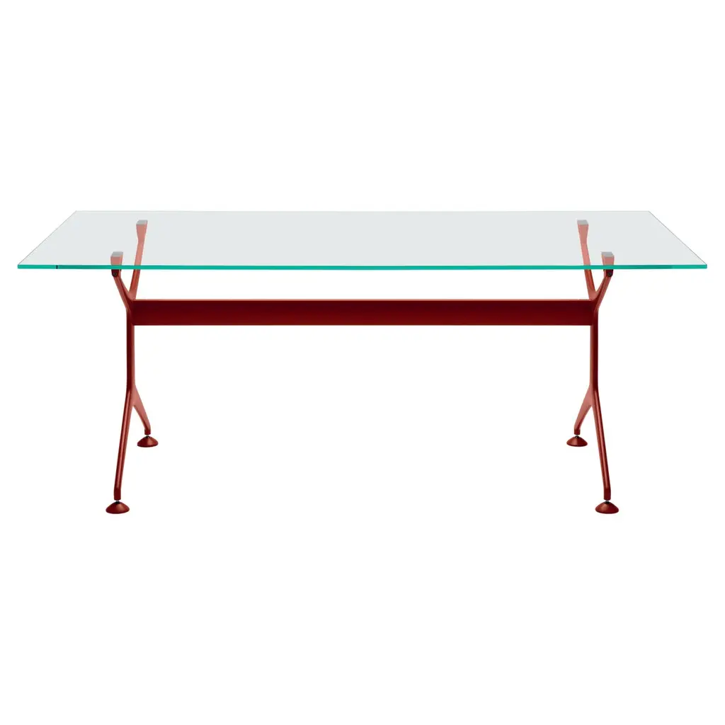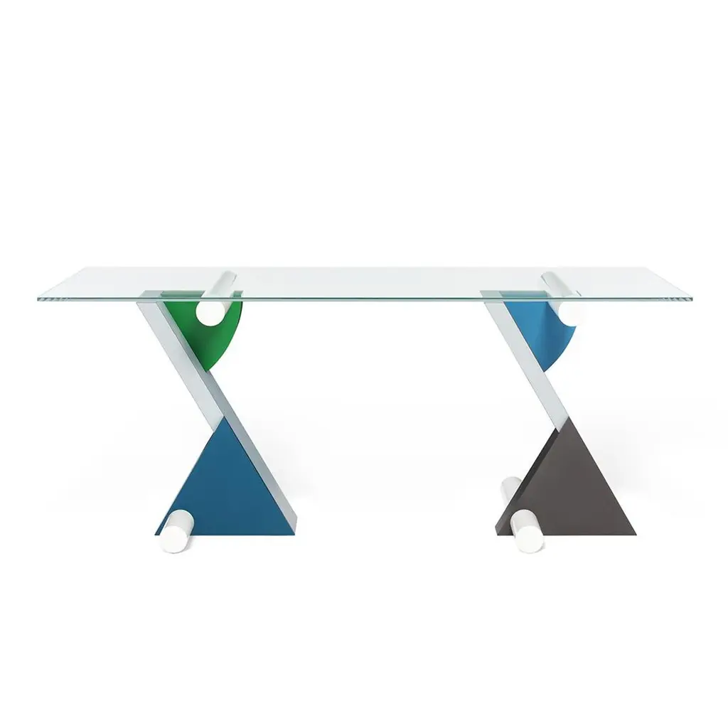 Fortune Side table in plastic laminate, lacquered wood and glass. Designed in 1982, by Michele De Lucchi. Michele De Lucchi was born in 1951 in Ferrara and graduated in architecture in Florence. During the period of radical and experimental architecture he was a prominent figure in movements like Cavart, Alchymia and Memphis. His architectural designs have been mainly for office buildings in Japan, in Germany, in Switzerland and in Italy. He has taken care of numerous art and design exhibitions and has planned buildings for museums as Triennale di Milano, Palazzo delle Esposizioni di Roma and Neues Museum Berlin. His professional work has always gone side-by-side with a personal exploration of architecture, design, technology and crafts.Memphis Milano is the great cultural phenomenon of the 1980s that revolutionized creative and commercial logics in design. Born from the idea of Ettore Sottsass and a group of young designers and architects, in Milan, coupled in the years by famous designers from the international scene, Memphis turned upside down all of the existing parameters on living. Ettore Sottsass as the backbone of the group, design gained a new concept and expression through new shapes, materials and patterns, expanding the creative limits of the industry. Memphis became a symbol of New Design. Its influence is still clear in various sectors of production and beyond.Additional info:- Dimensions: W 71, D 31.5, H 28.75 inches- Materials: Plastic laminate, lacquered wood and glass- Purchased products are shipped with forms of authenticity by Memphis Milano, as well as a metal plaque which contains the signature of the designer, and the year which the product was originally designed in.- Pricing: Prices do not include VAT.