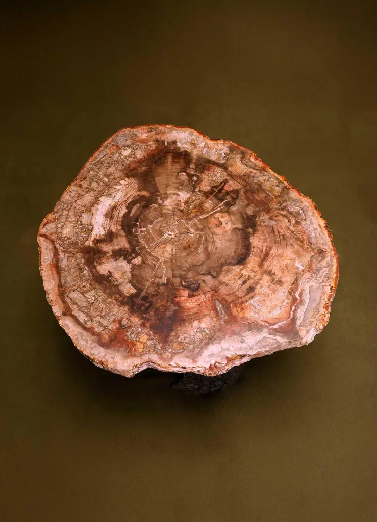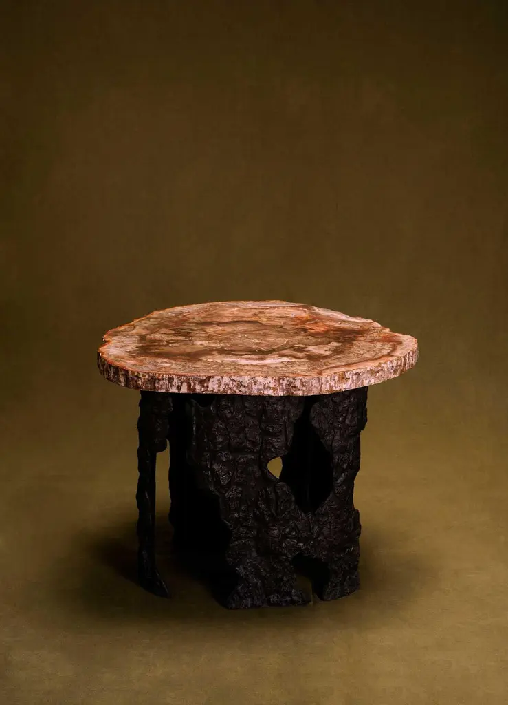 Fossil Side Table In Petrified Wood Overlay Top & Brass, Viya By Vikram Goyal