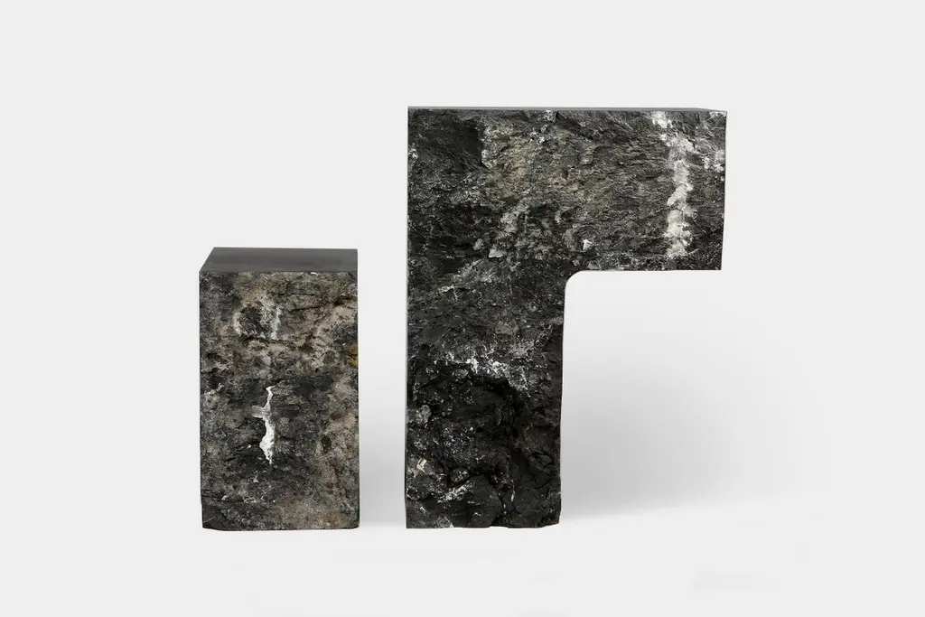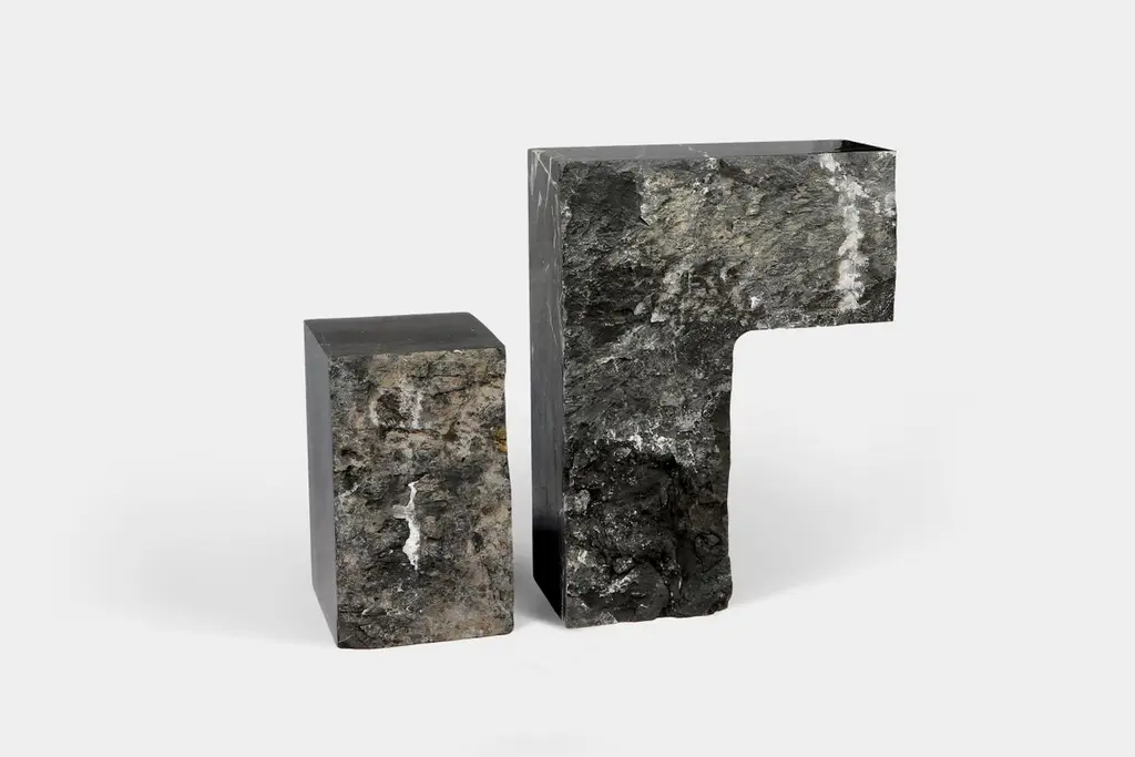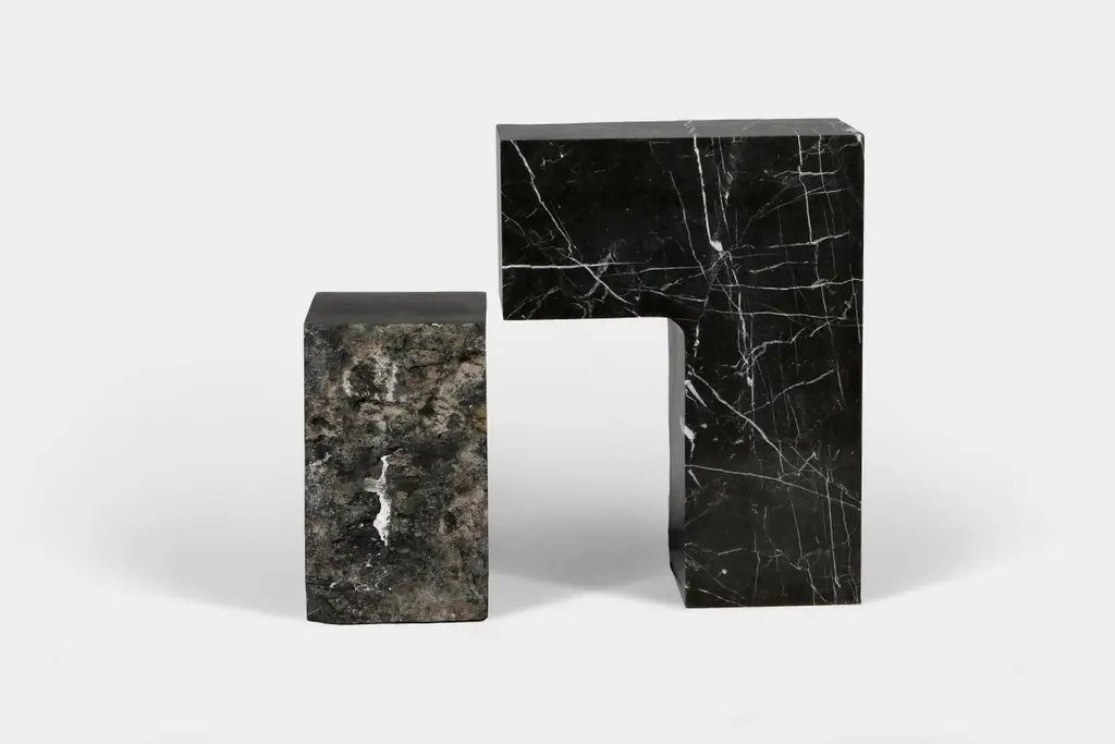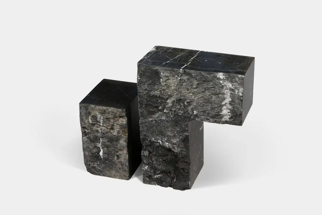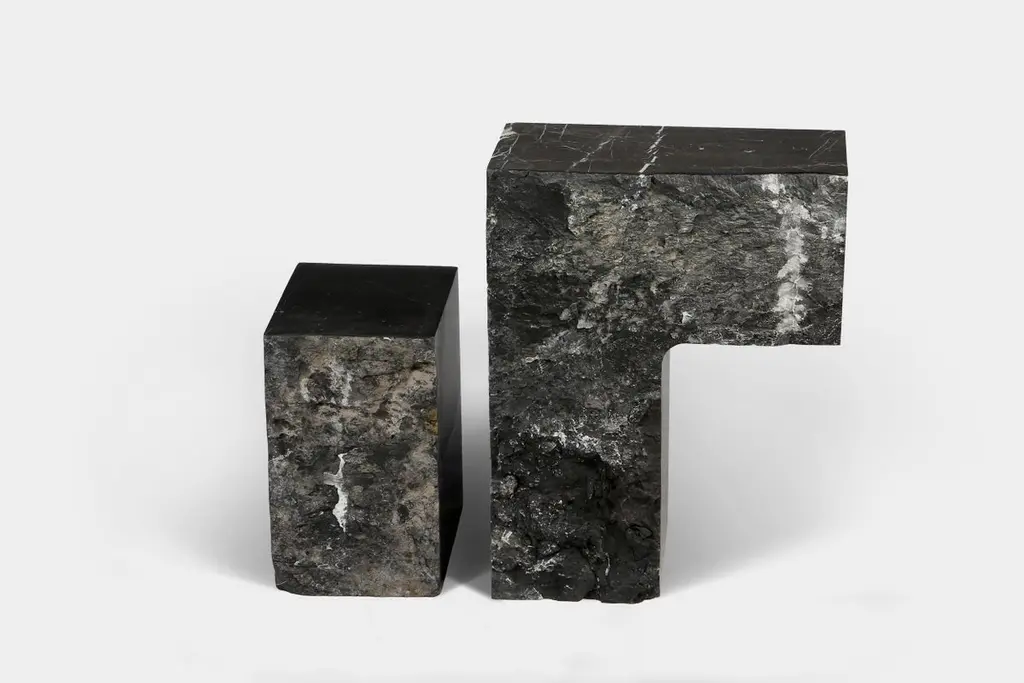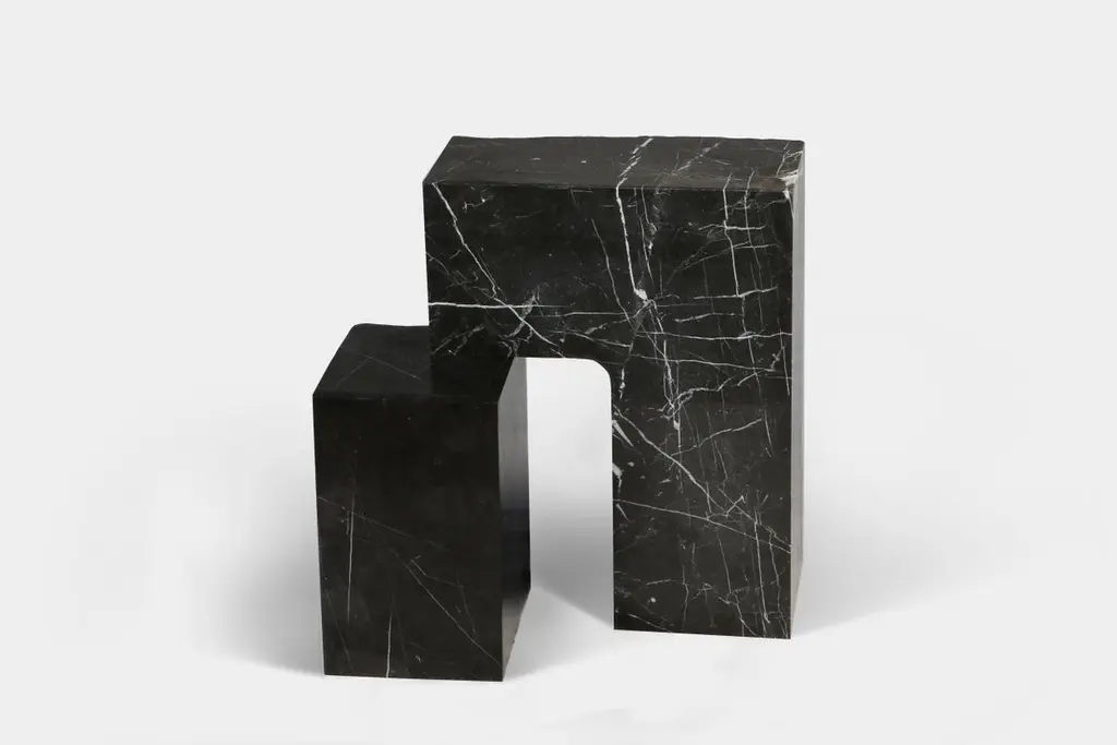 Found II Side Table No.1 by A SpaceDimensions: D48 x W25 x H53cmMaterials: MarbleSpontaneity, environmental awareness and the primeval nature of the materials are central themes explored in this collection, which focuses on the power of the medium to dictate the final form these functional works of art take. It consists of 10 one-of-a-kind objects that are cut from a single piece of 10"-thick stone. Perfectly polished marble surface on one side is juxtaposed with the natural rough surface on the opposite side of each object, reminiscent of the mountains that the stone came from. A S P A C E is a New York-based design & art studio, co-founded by Anna Aristova and Roza Gazarian in 2016. Their collaborative pieces are an attempt to bring in the timeless beauty of nature to contemporary lifestyle, whether it’s functional furniture or a decorative object. The essence of each of their creations is a sense of a vast open space, where ideas, thoughts or feelings spontaneously arise, evolve through experimentation and ultimately manifest as a functional art piece. Each object is a one-of-a-kind creation that beckons to look beyond mere form and material, and to connect to the primordial nature of the elements. Their work is a constant balance of opposites -- improvisation and thoughtful planning, intuition and knowledge, organic and geometric, timelessness and impermanence.