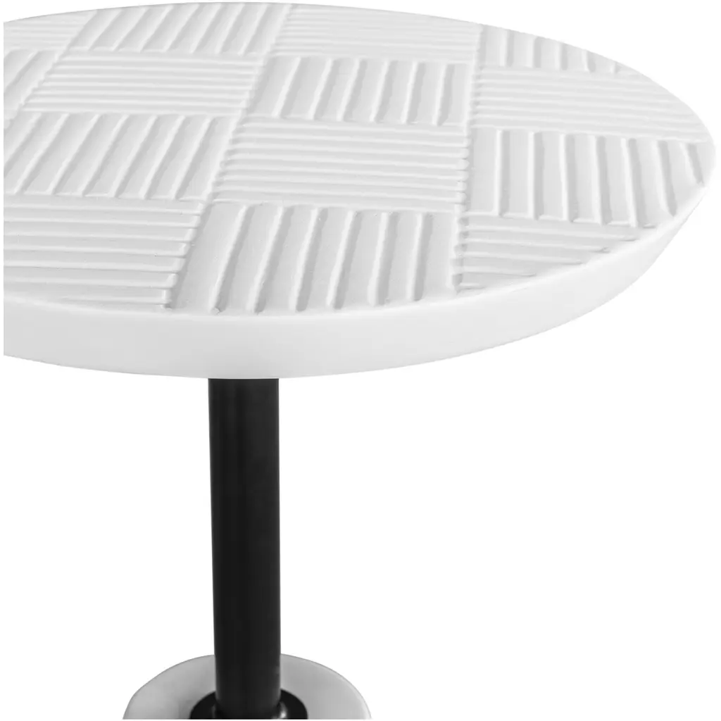 The Foundation Outdoor Accent Table is a building block for creating the sleekest outdoor patio experience yet. A round, textured tabletop stands proud on a steel beam balancing on concrete. This solid look is here to stay, rain or shine.