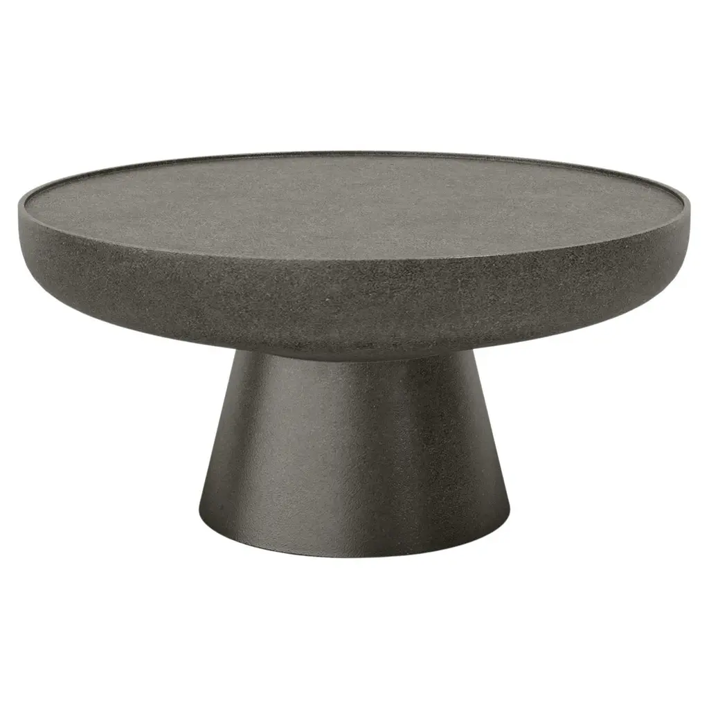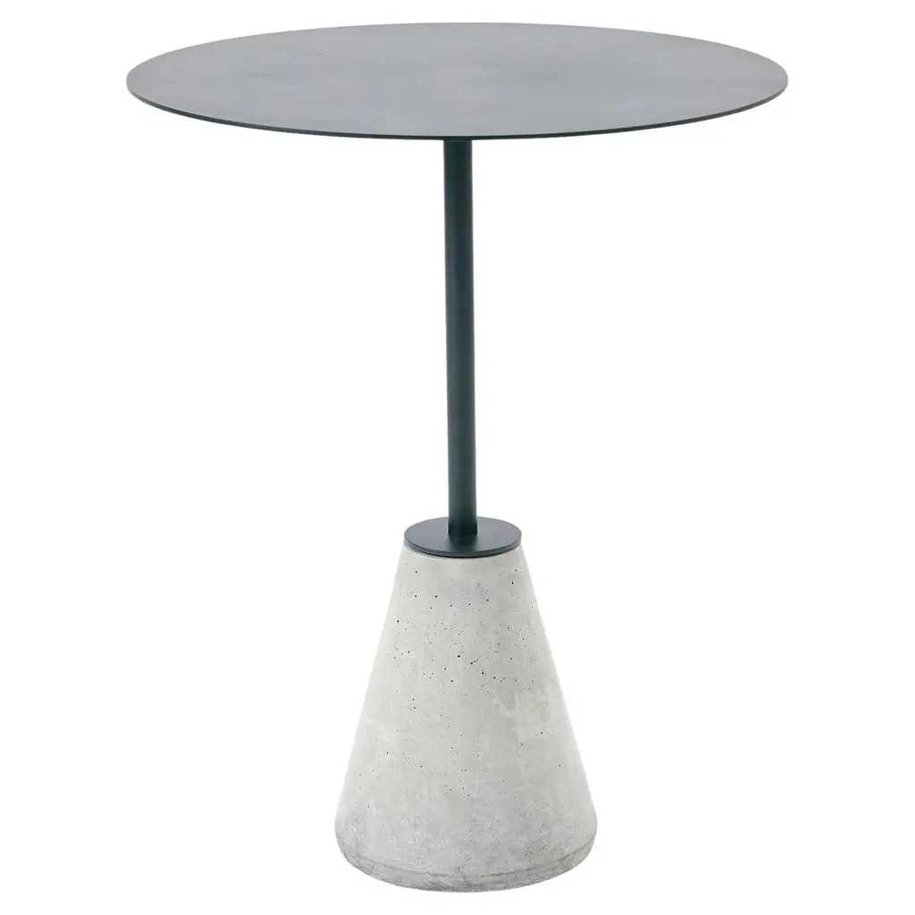The Foundation Outdoor Accent Table is a building block for creating the sleekest outdoor patio experience yet. A round, textured tabletop stands proud on a steel beam balancing on concrete. This solid look is here to stay, rain or shine.